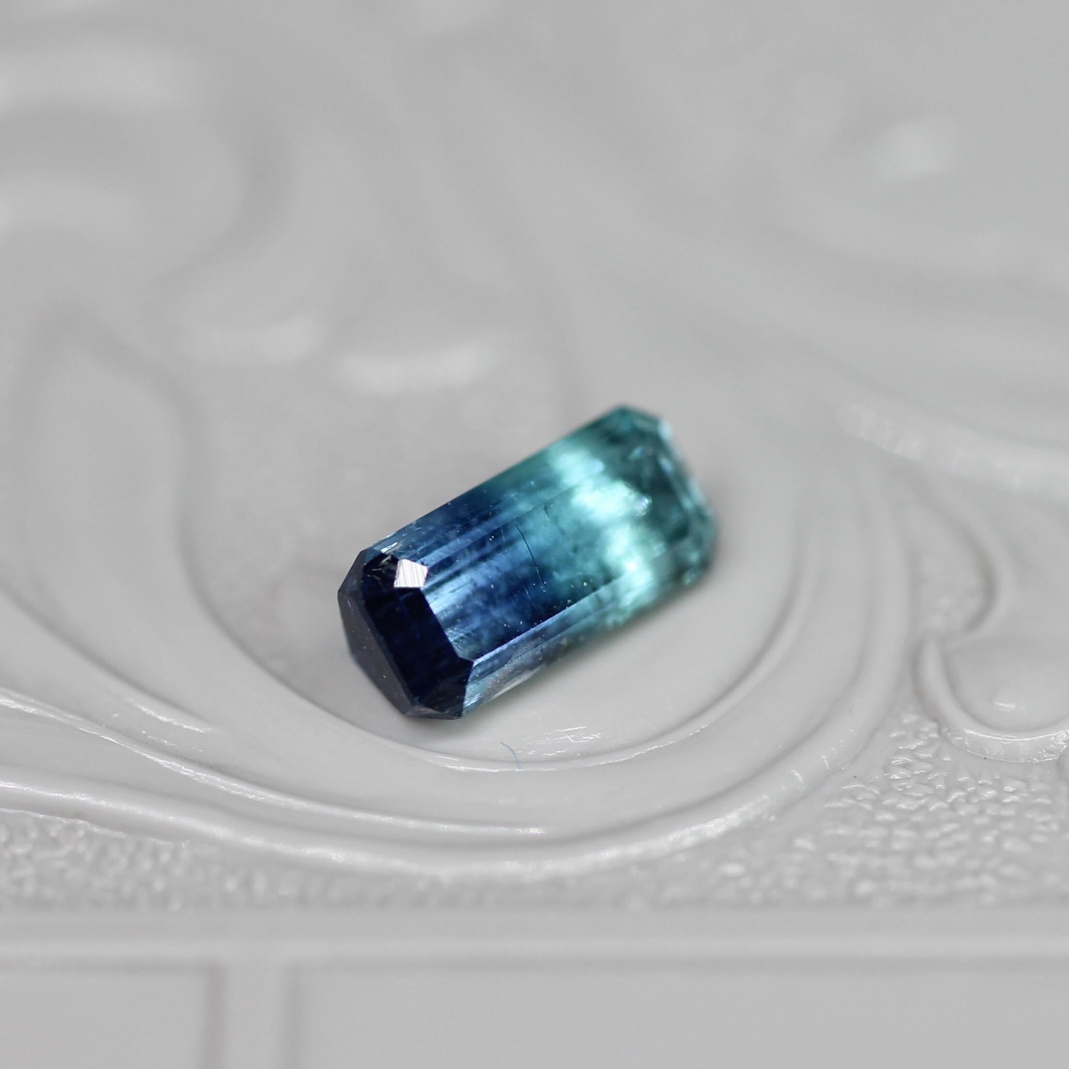 細長スクエアカットがスタイリッシュなパーティーカラードトルマリンです。 煌めくブルーの濃淡のグラデーションの移り変わりが魅力的です。