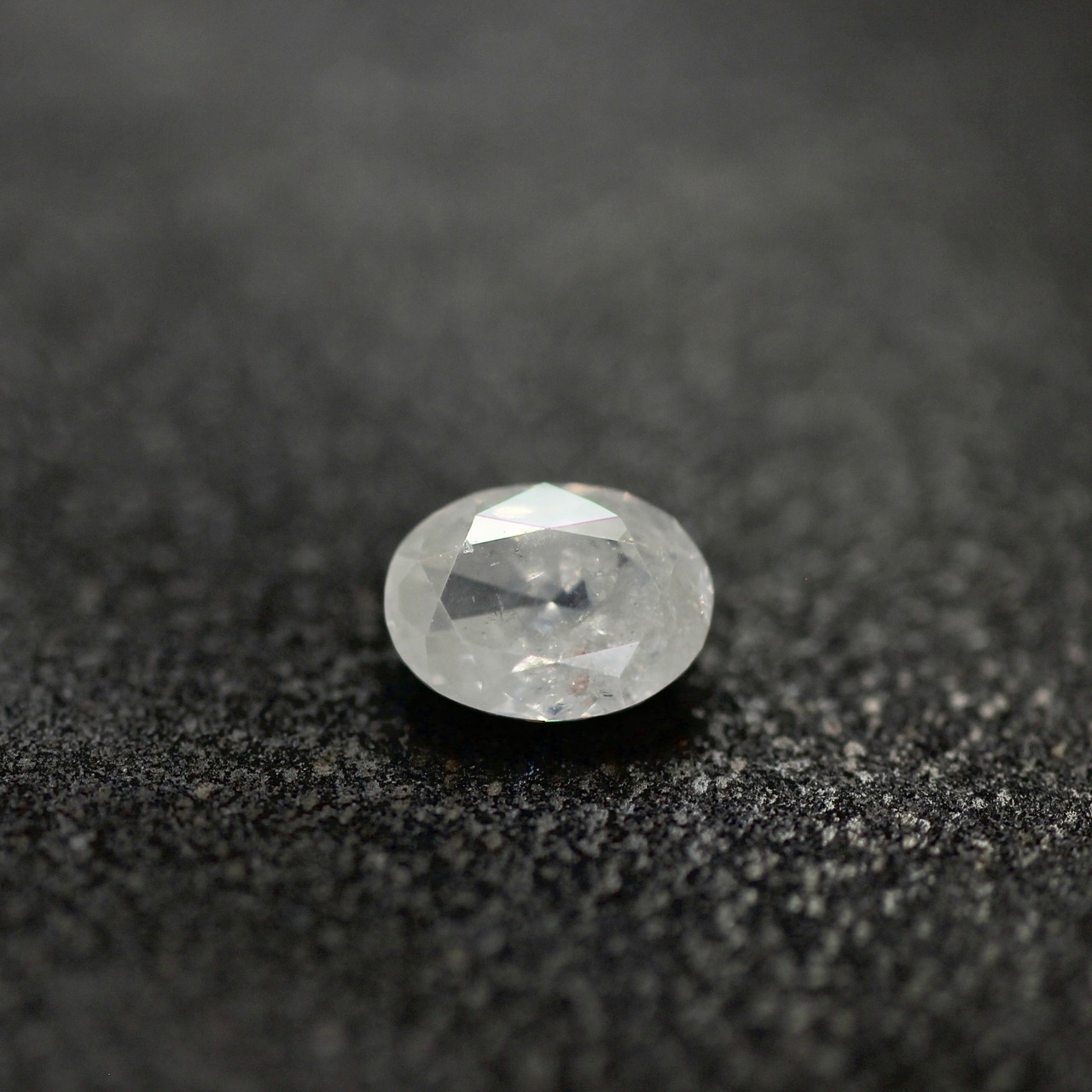 ボディ全体にベールを纏ったようなホワイトカラーのオーバルローズカットのダイヤモンドです。