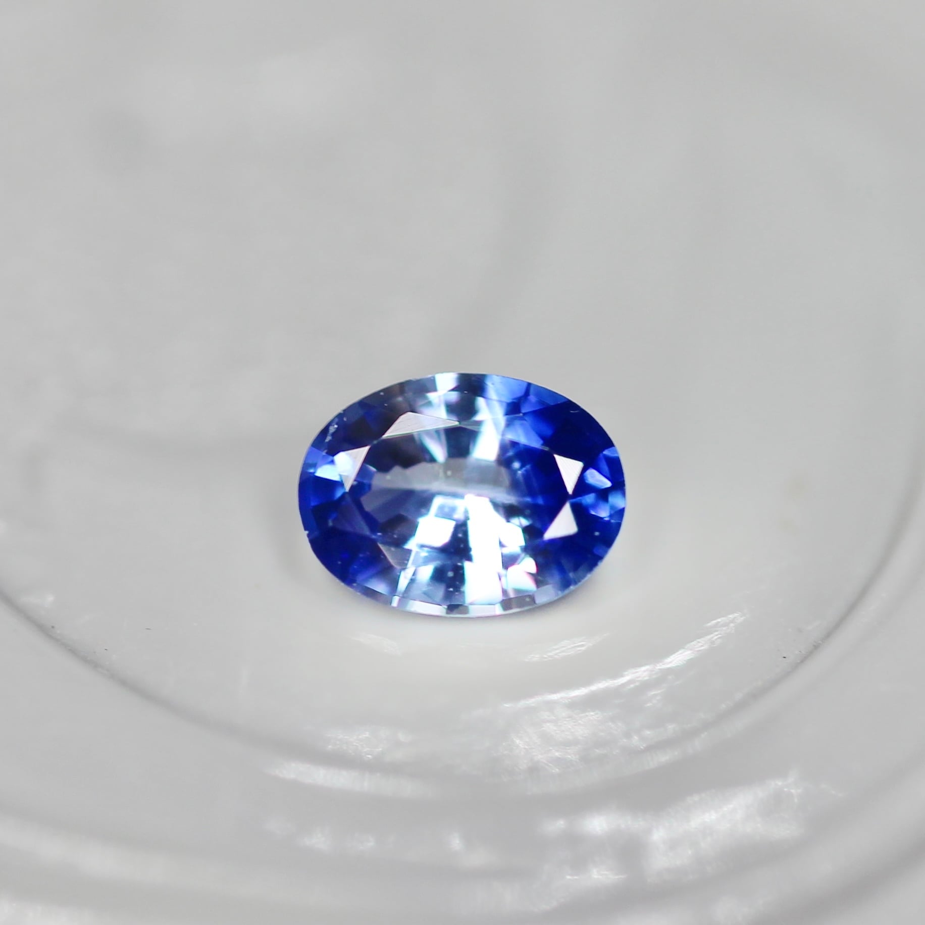 サファイアらしい深海のような鮮やかなブルーとクリアのバイカラーサファイアです。オーバルカットのフォルムも美しく、色乗りの良いカラーが美しく煌めいています。