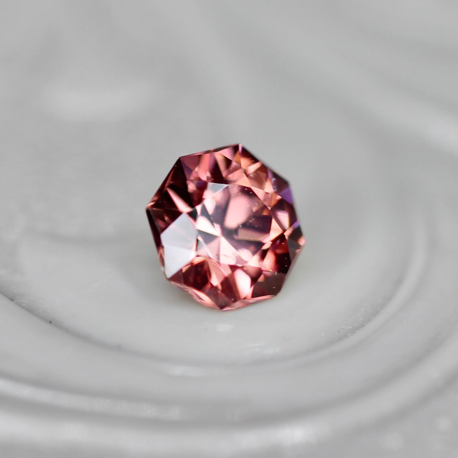 珍しい8角形のオクタゴンカットのピンクジルコンです。ほんのりブラウンを噛んでいて大人っぽい雰囲気です。