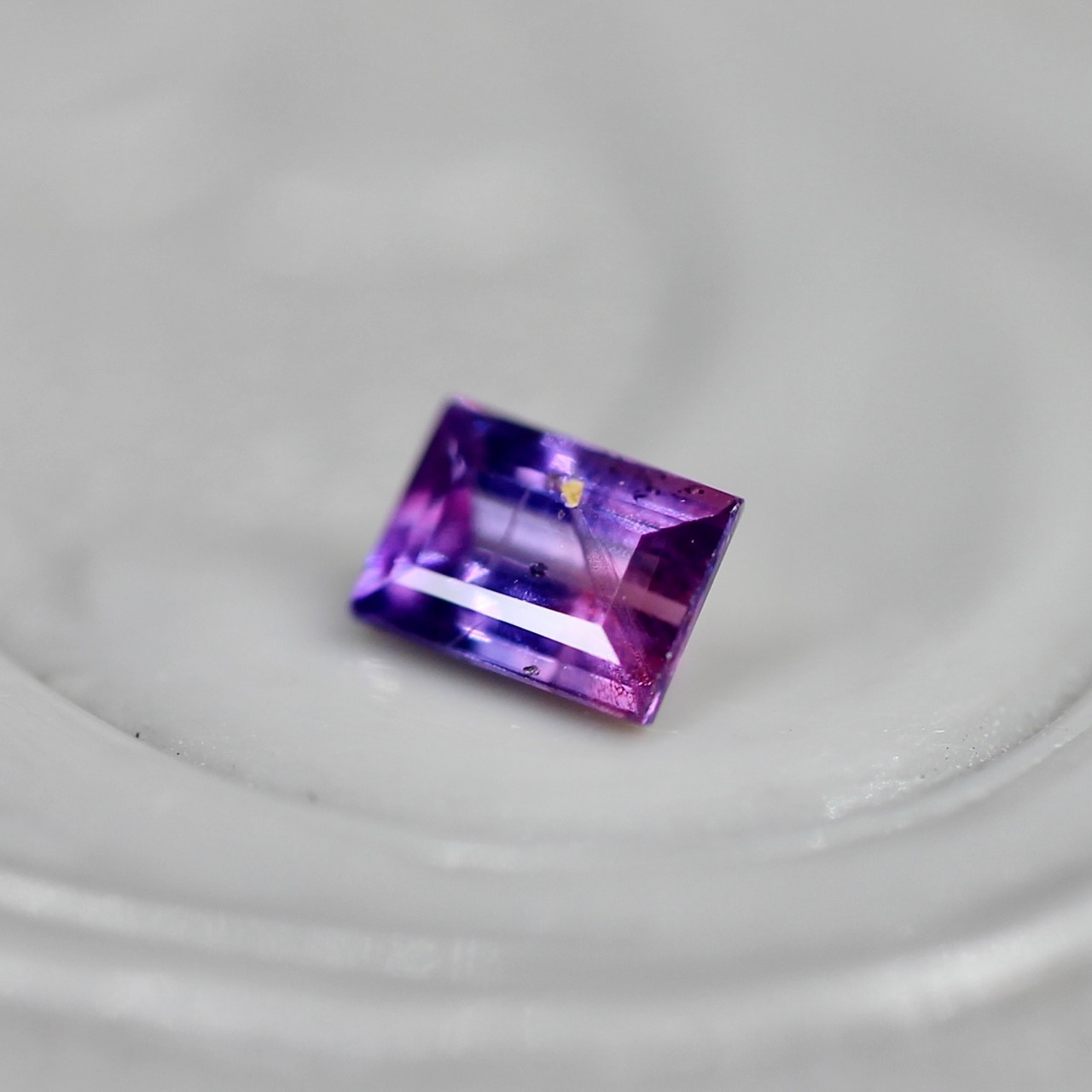 星雲のように鮮やかでドラマティックなパープルピンクカラーのグラデーションが美しいスクエアカットのバイカラーサファイアです。
