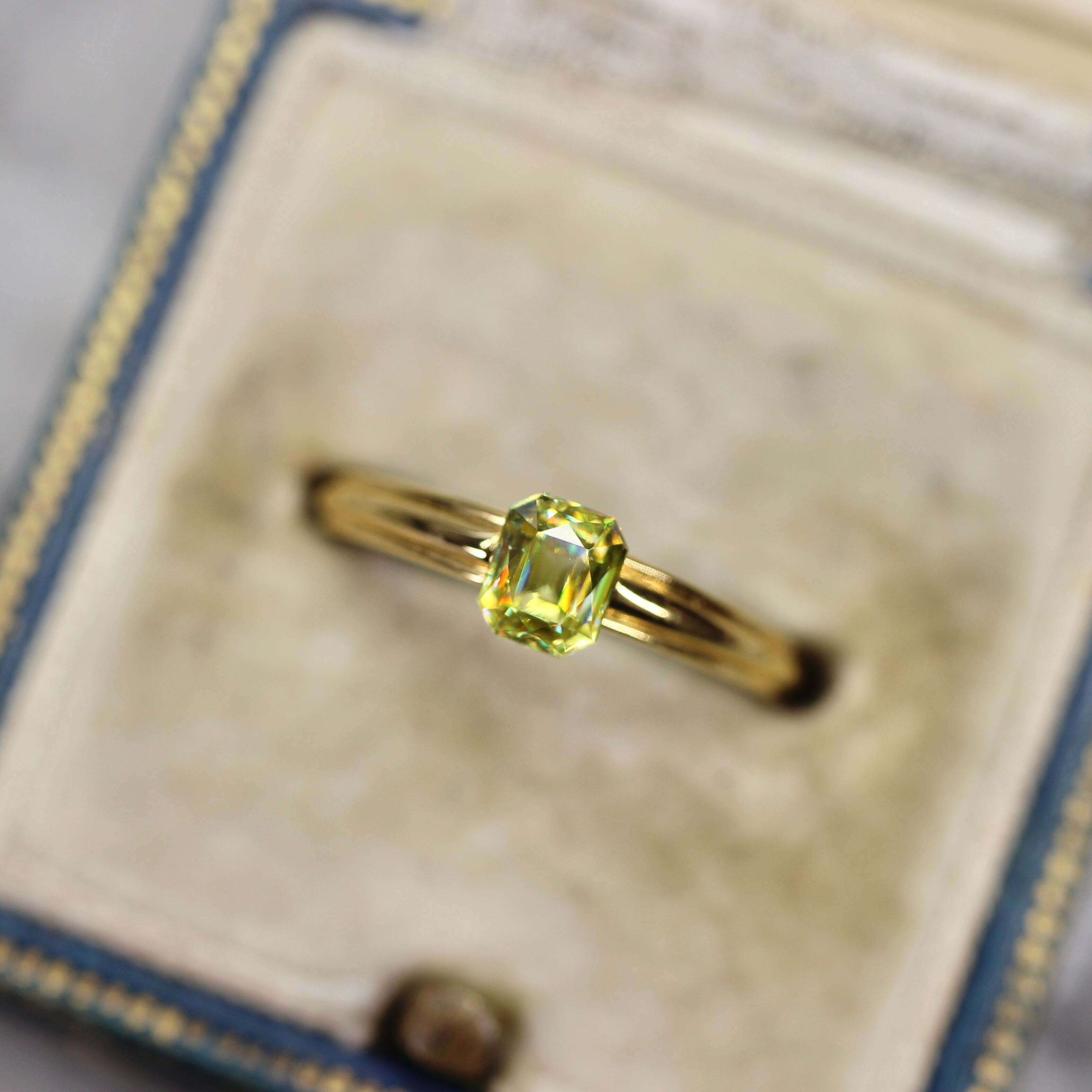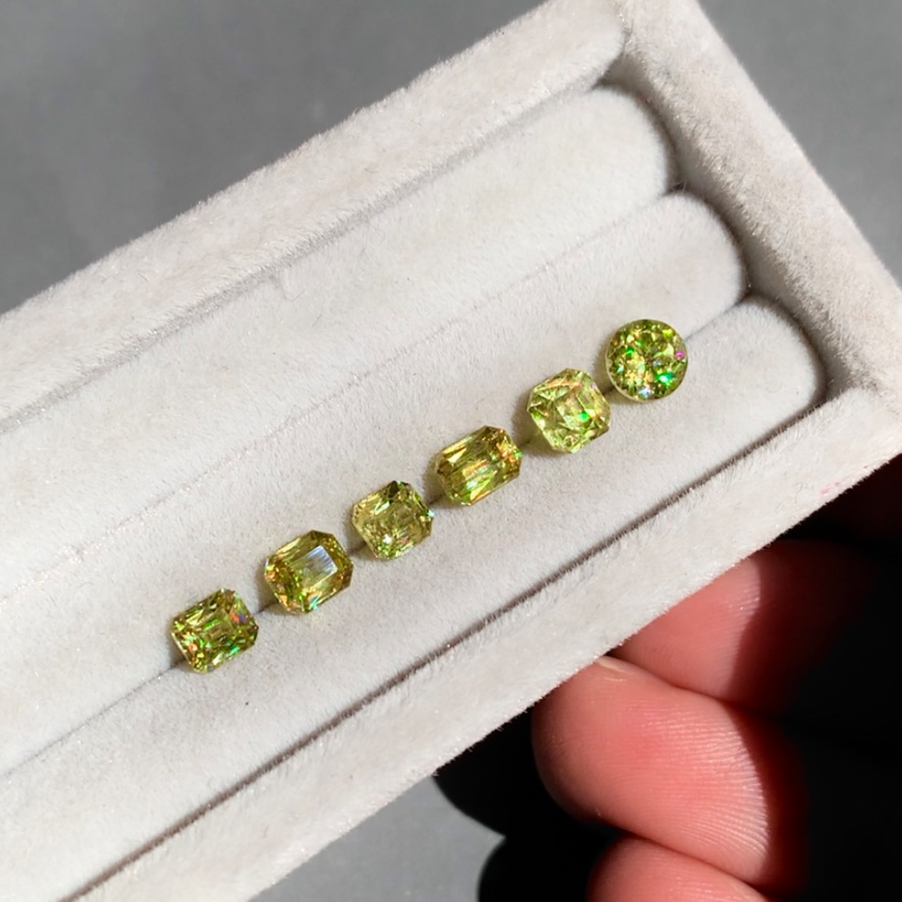 鮮やかに色づいたイエローグリーンカラーのスフェーンです。