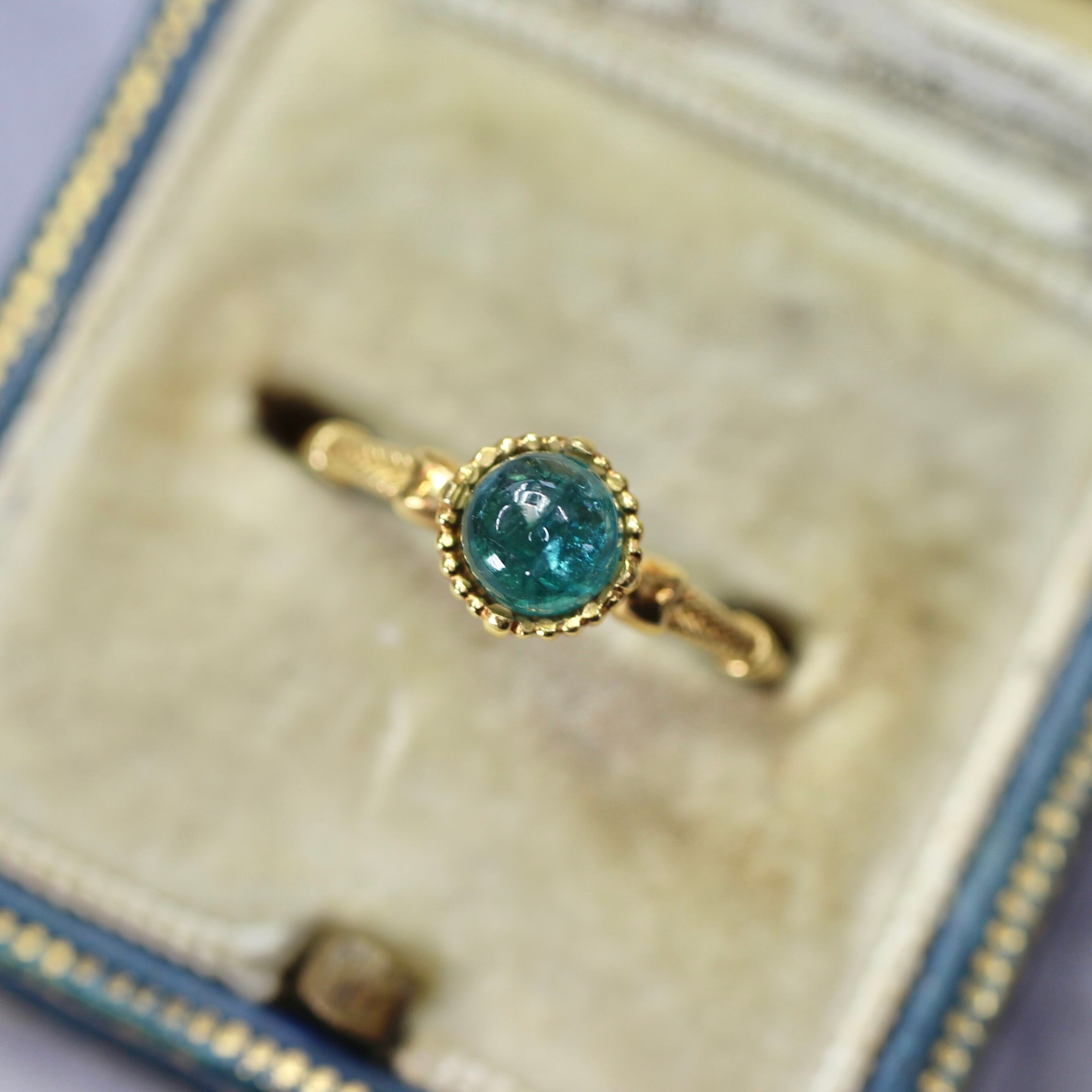 深い森に差し込む朝の光のような奥行きある、深く色づいたグリーンブルーのグランディディエライトです。