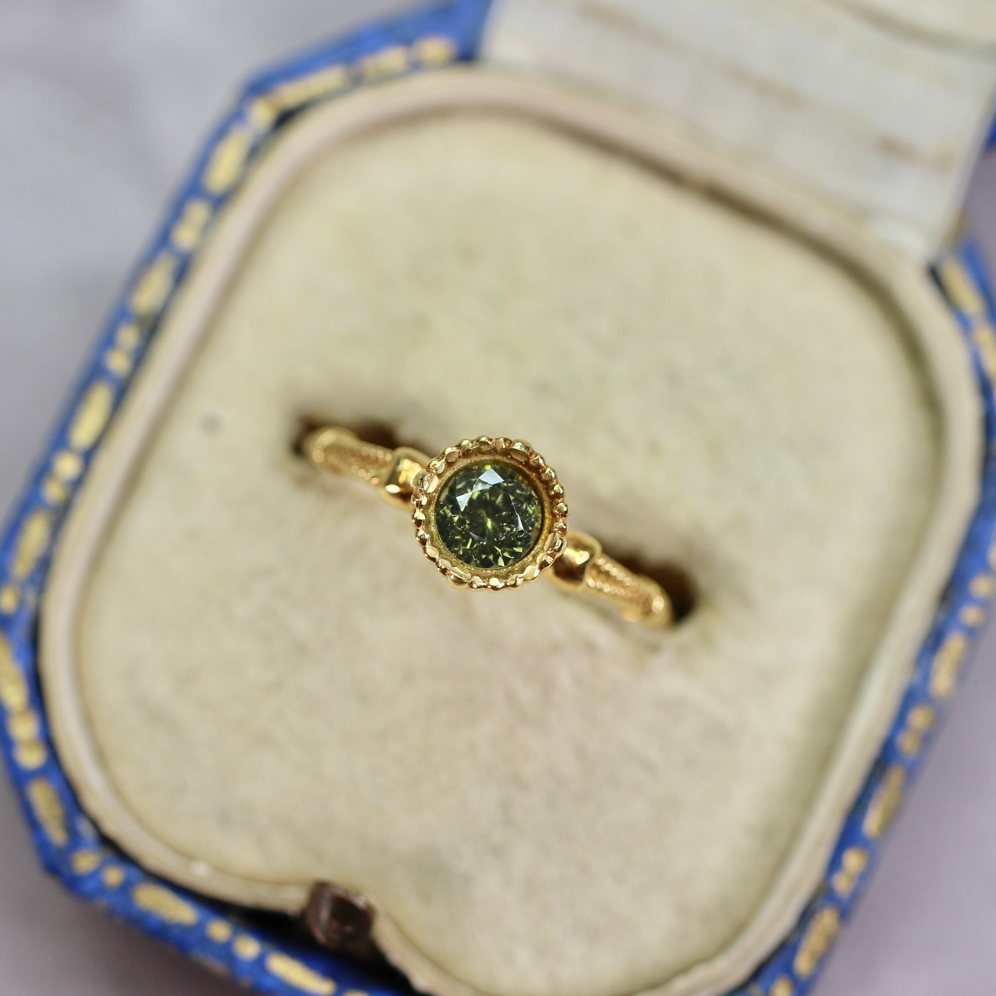 深いモスグリーンが落ち着いた大人な雰囲気を醸し出すラウンドカットのジルコンです。光を浴びる度に鮮やかな色彩が華やかに煌めきます。