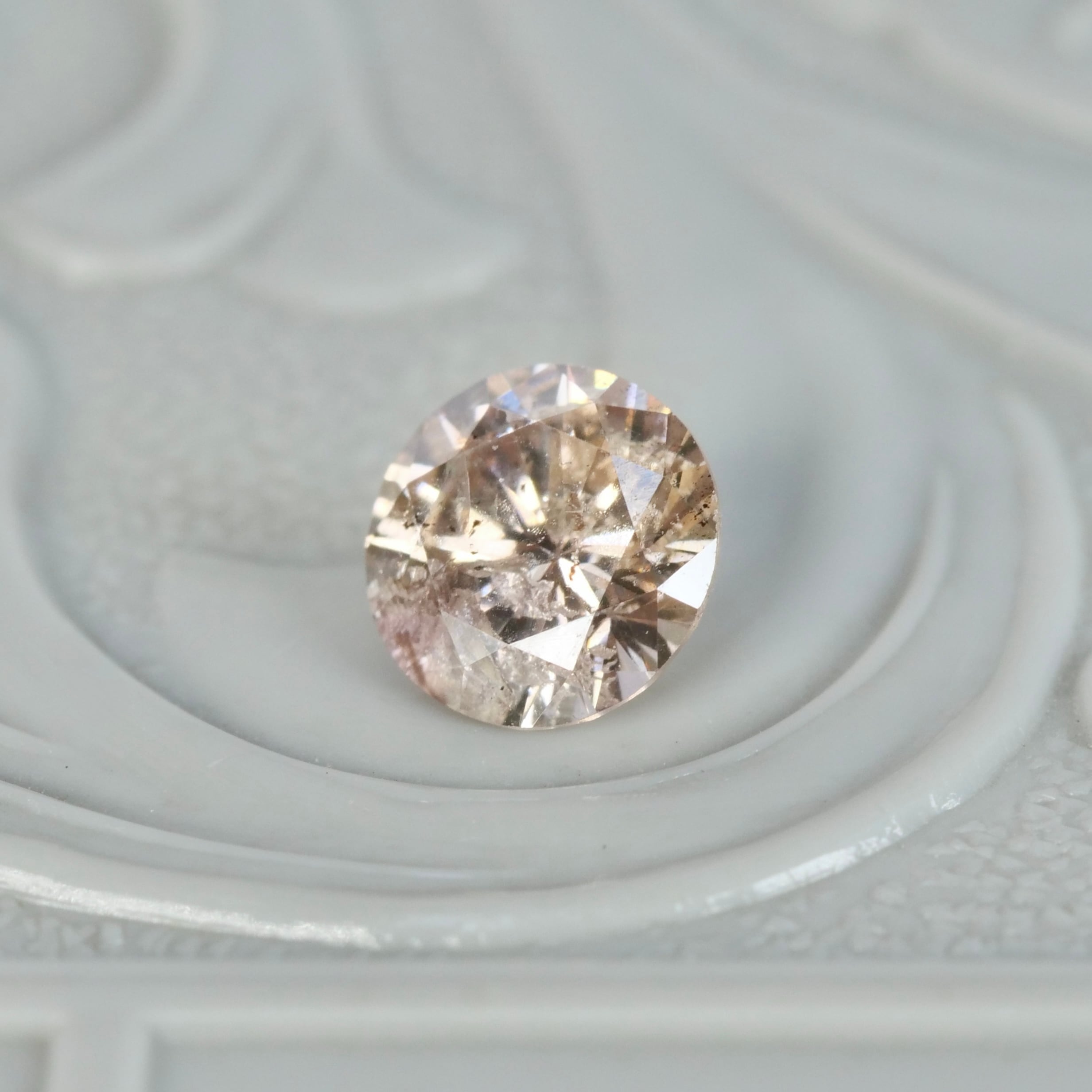 ほんのり甘さを感じさせるピンクブラウンの輝きが愛らしい、ラウンドブリリアントカットのダイヤモンドです。インクルージョンが散りばめられたチョコチップのようで、甘さの中にもビターな大人の雰囲気をプラスしています。
