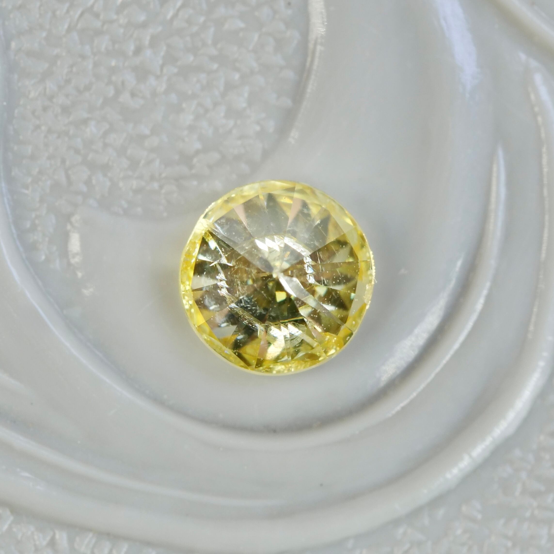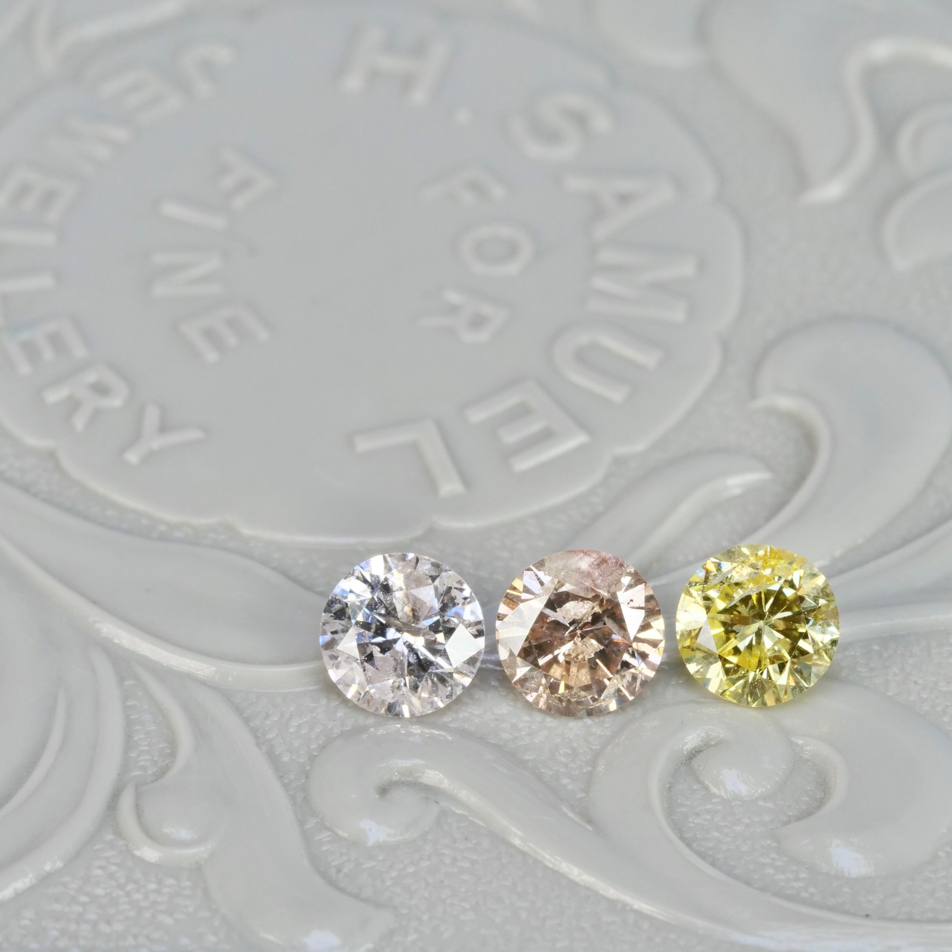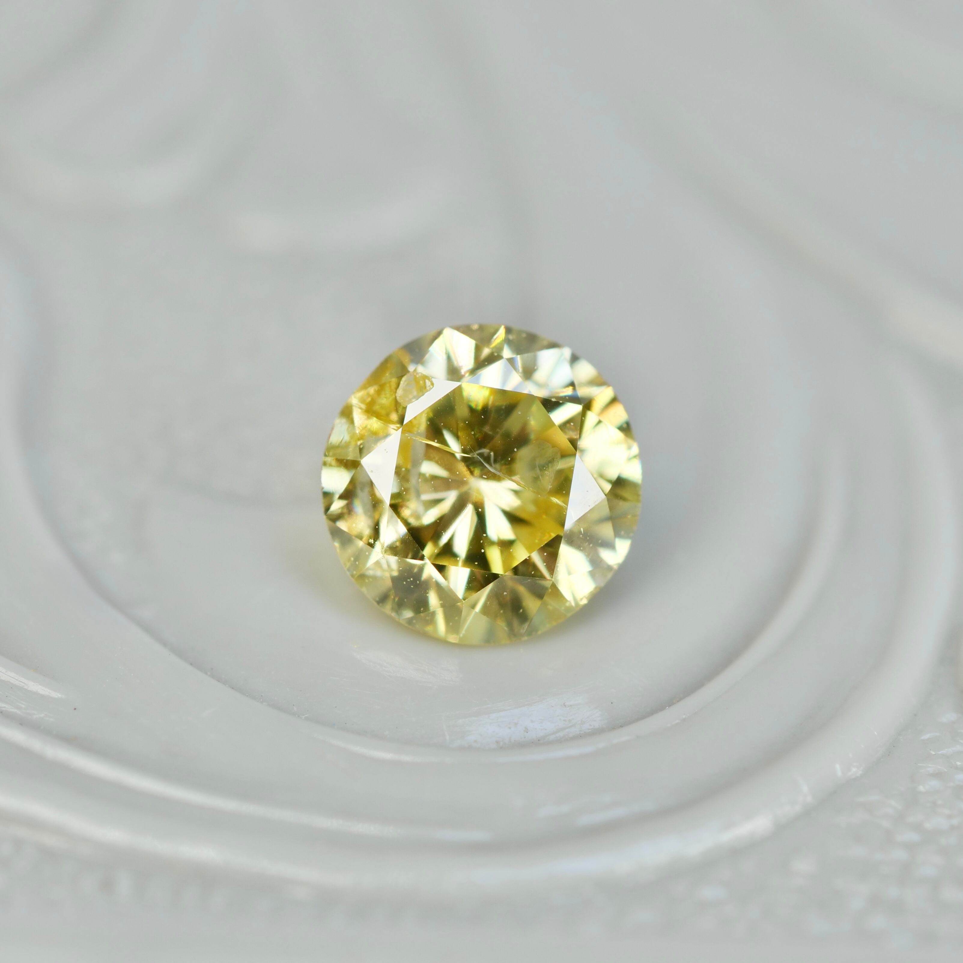 はちみつのように優しい黄金色がゴージャスな印象の、ラウンドブリリアントカットのダイヤモンドです。