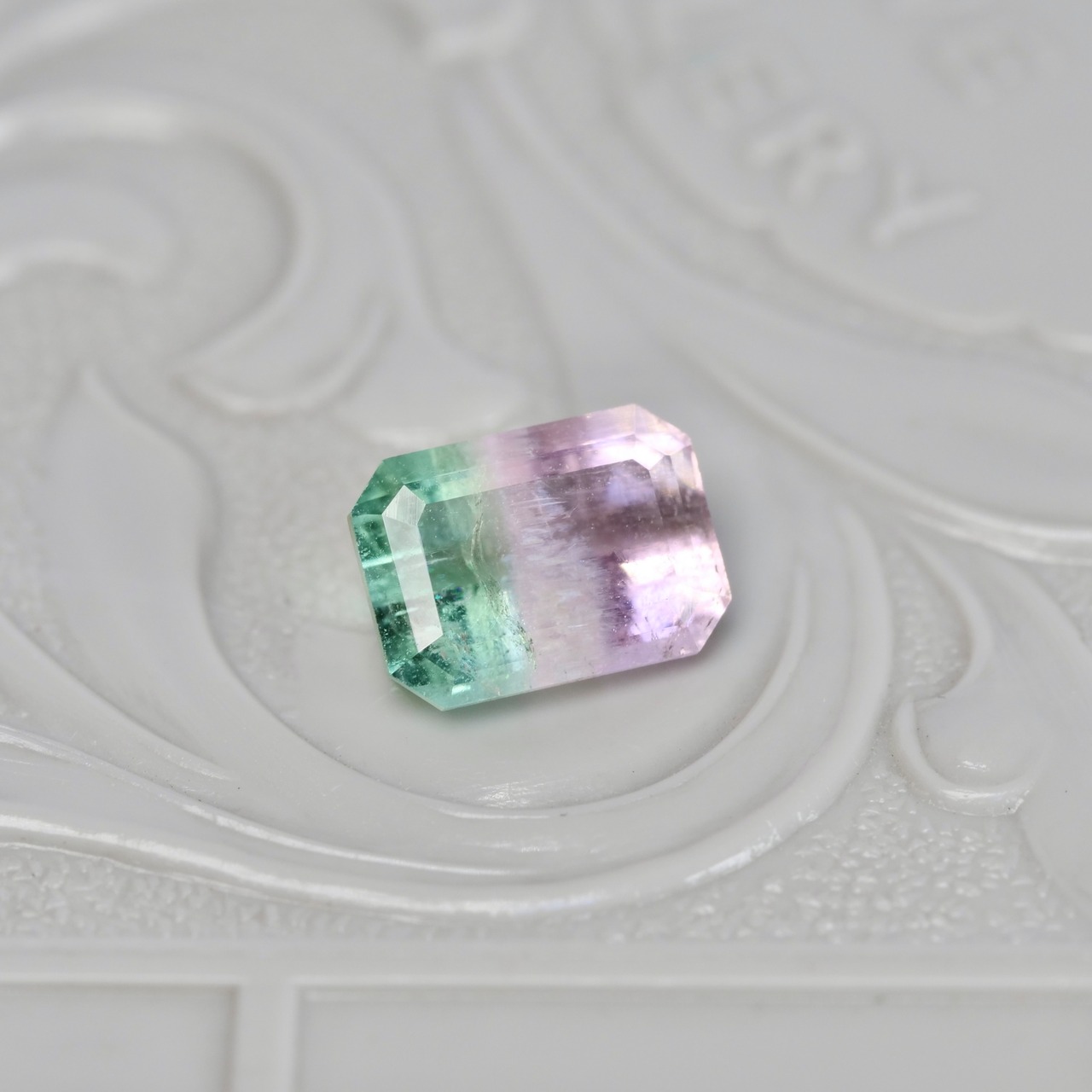 バイカラートルマリン 1.10ct エメラルドカット 7.1mm×5.1mm×3.3mm【MJ2827】