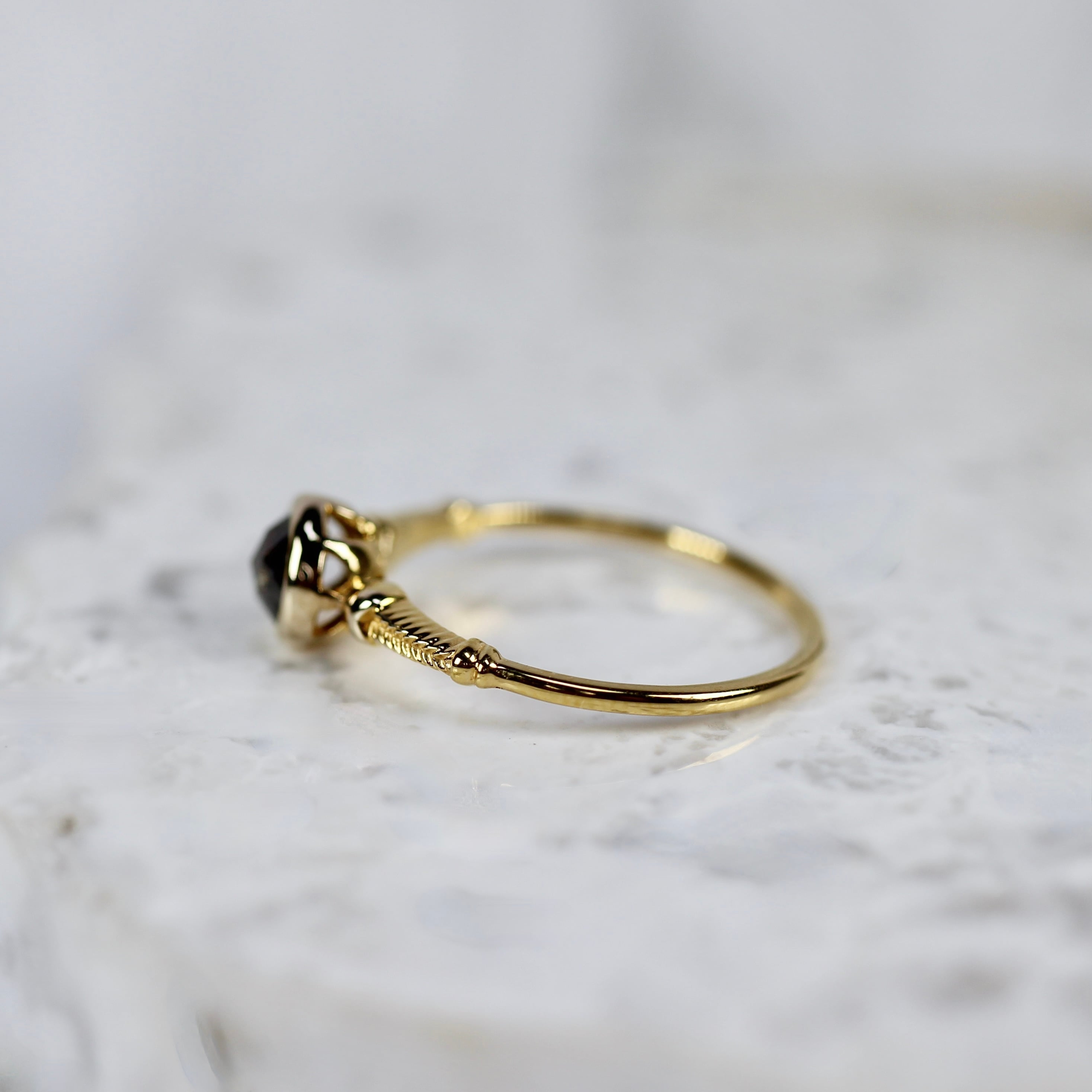 ソルトアンドペッパーダイヤモンド 0.6ct K10YG ラウンドローズカット フクリン(透かし)×ヘリンボーンアーム【MJ2842】