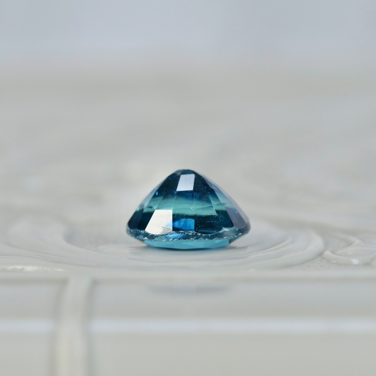 深く色付いた美しいネイビーブルーが上品なオーバルカットのブルージルコンです。
