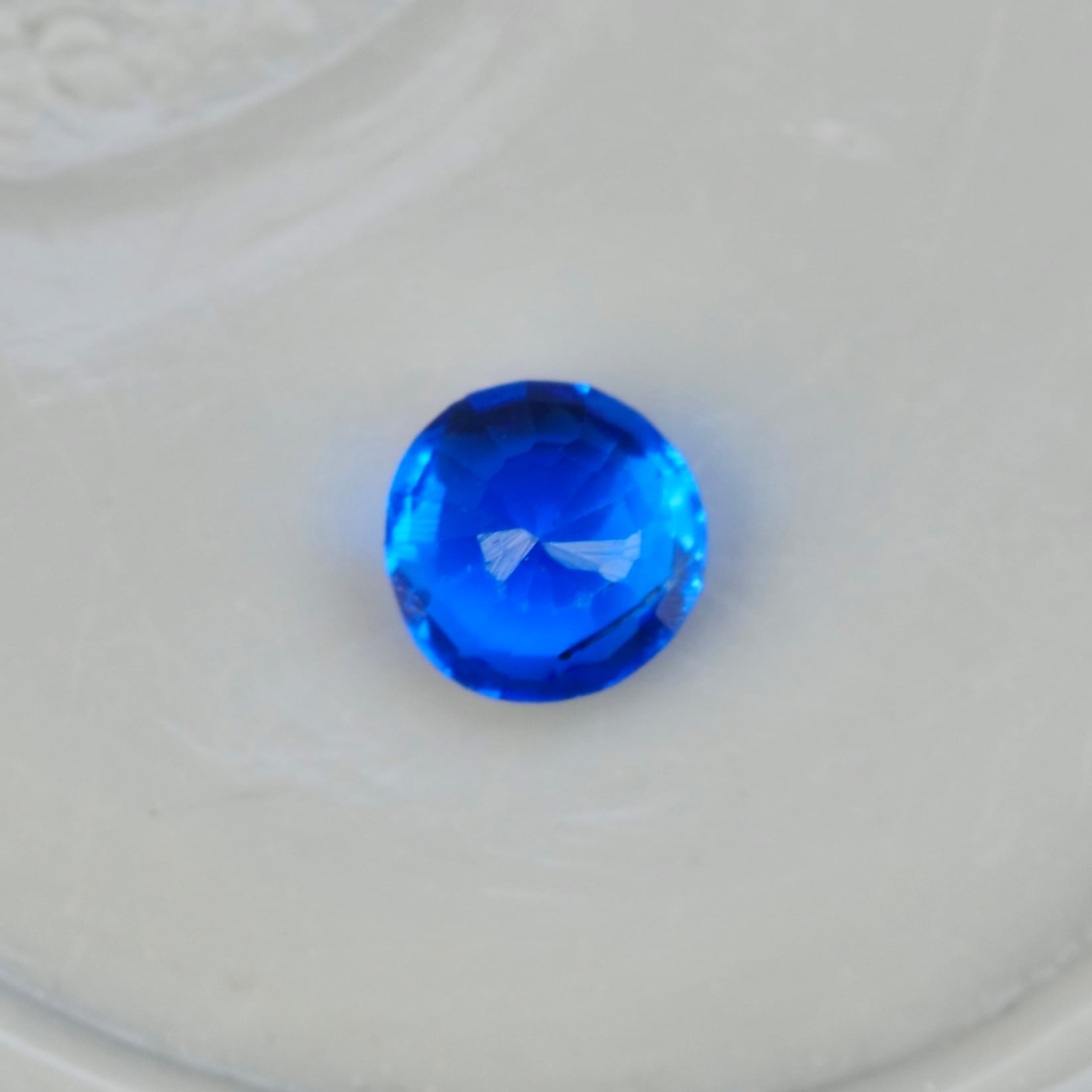 鮮やかに発色しているネオンブルーが印象的な、ラウンドカットのアウイナイトです。肉眼で見て目立つ内包物はなく、涼しげで、瑞々しい透明感を感じる煌めきです。