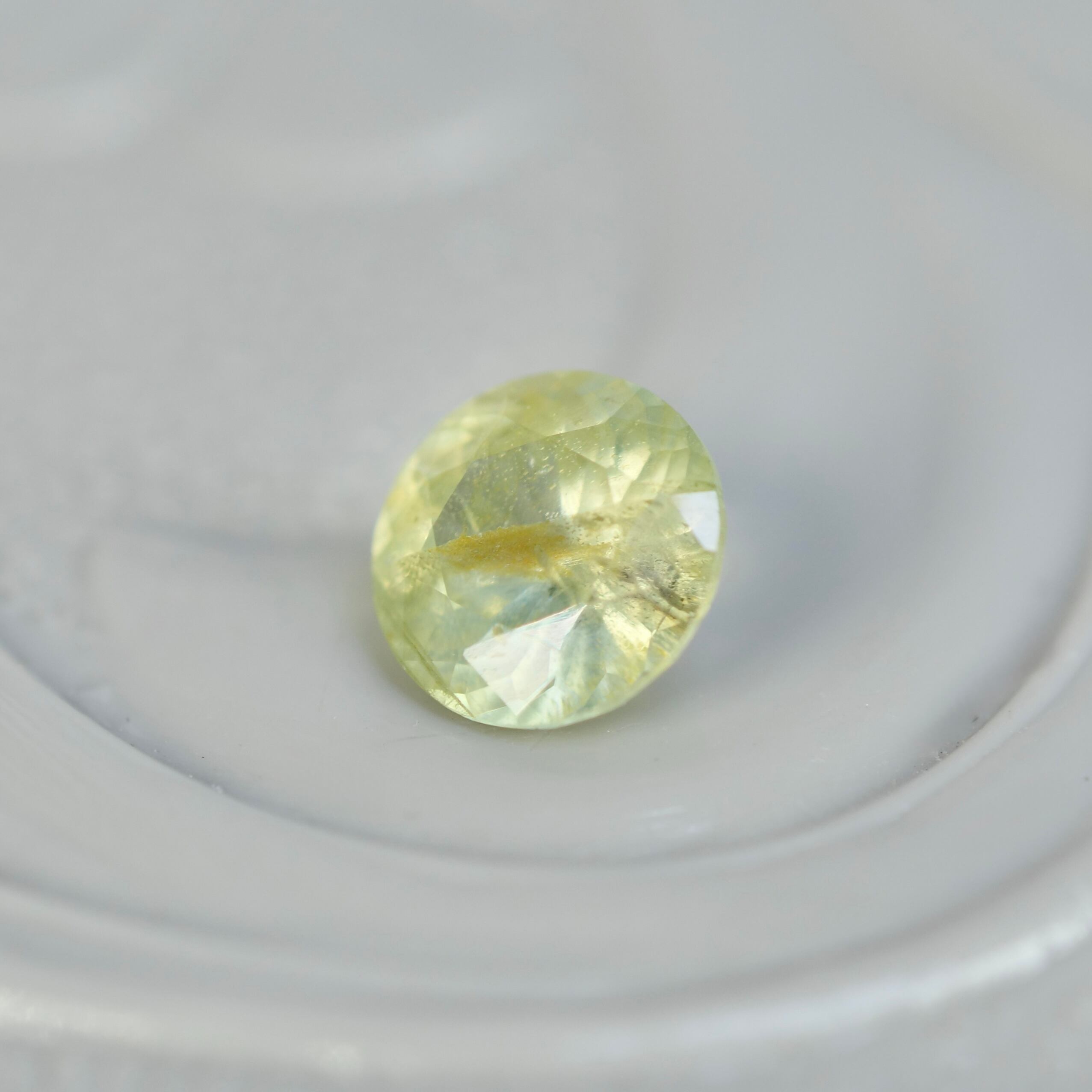 透明感のある、淡いグリーンティーのような優しいカラーが広がる、ラウンドカットのグリーンジルコンです。