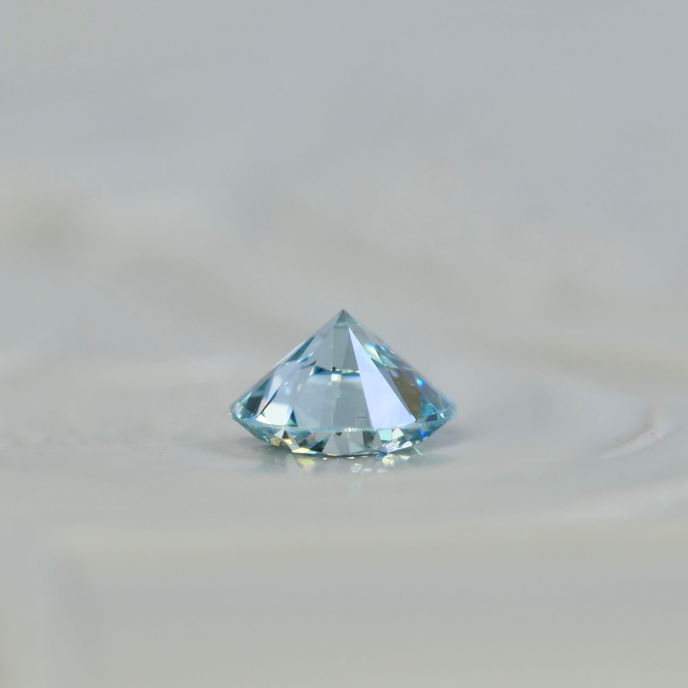 透明感ある煌めきが眩しい、ラウンドブリリアントカットのアイスブルーダイヤモンドです。