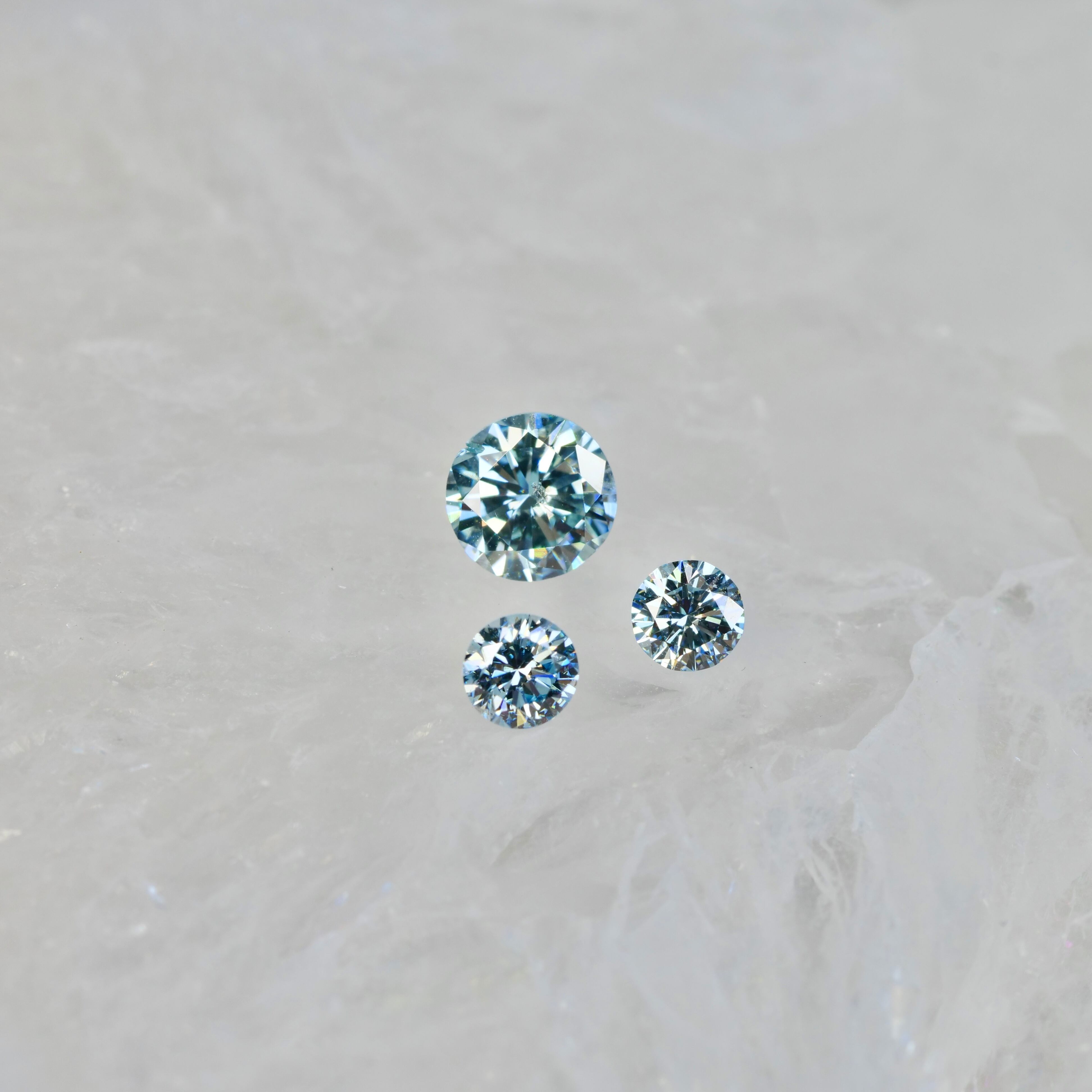 アイスブルーダイヤモンド 0.14ct ラウンドブリリアントカット 3.4mm×3.4mm×2.0mm【MJ2930】