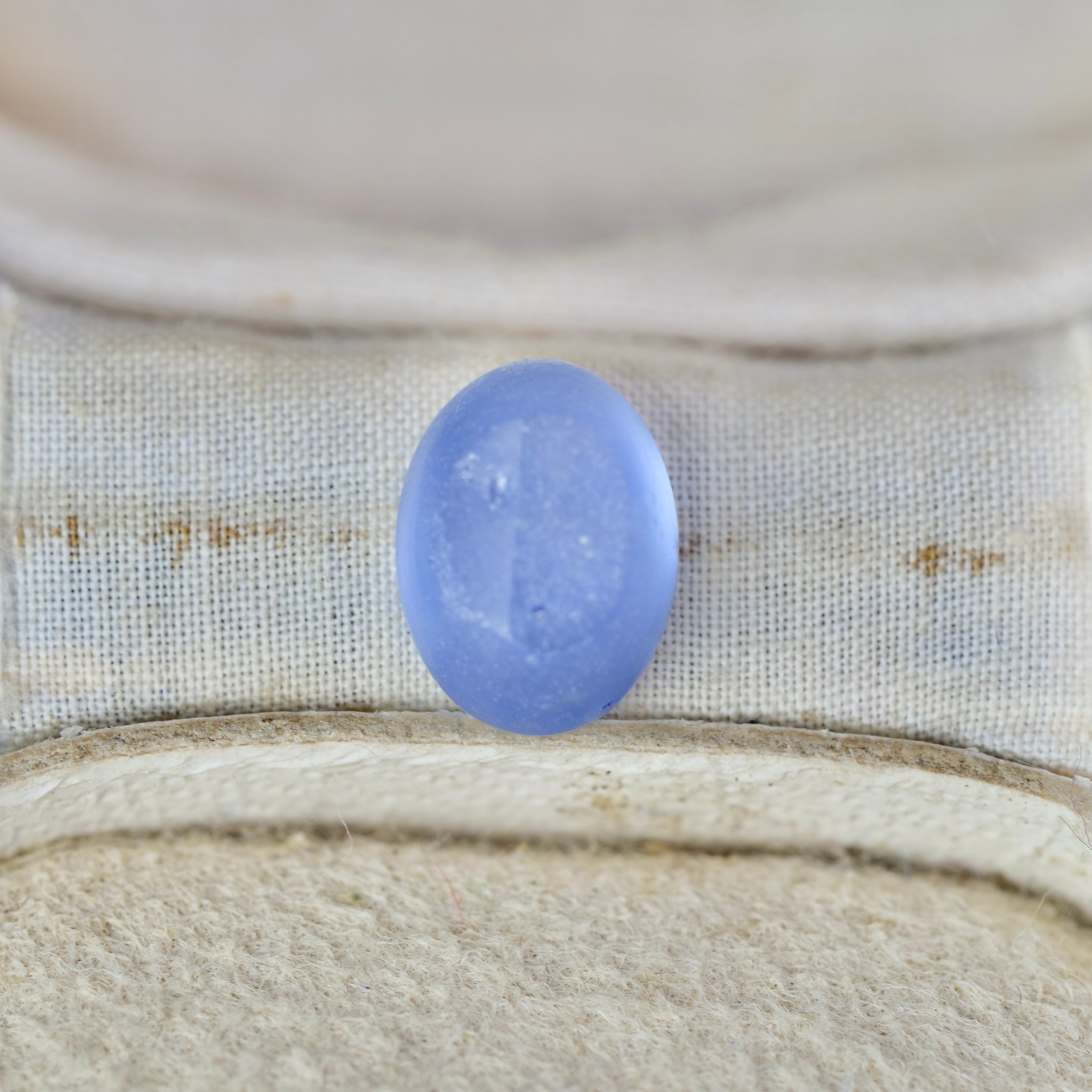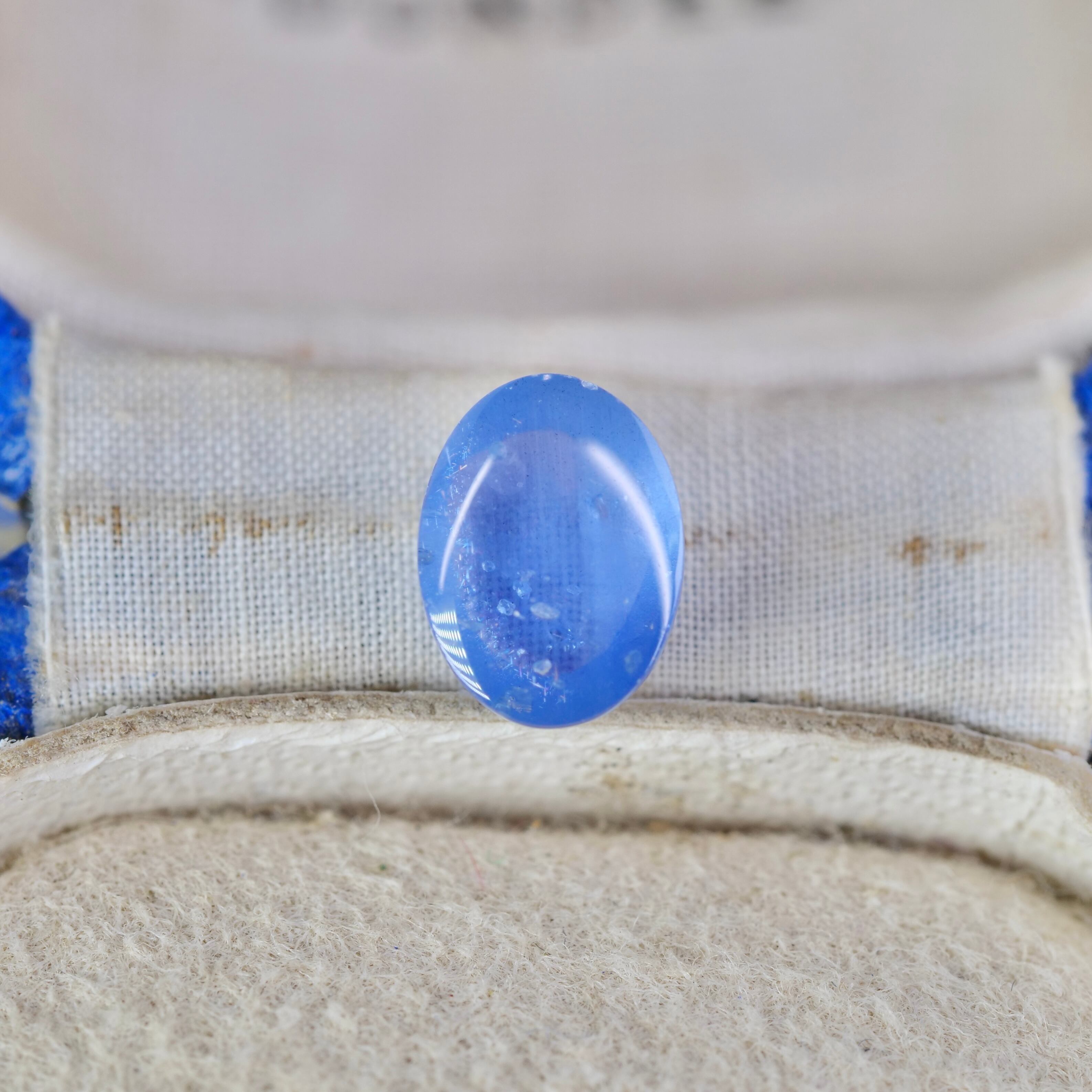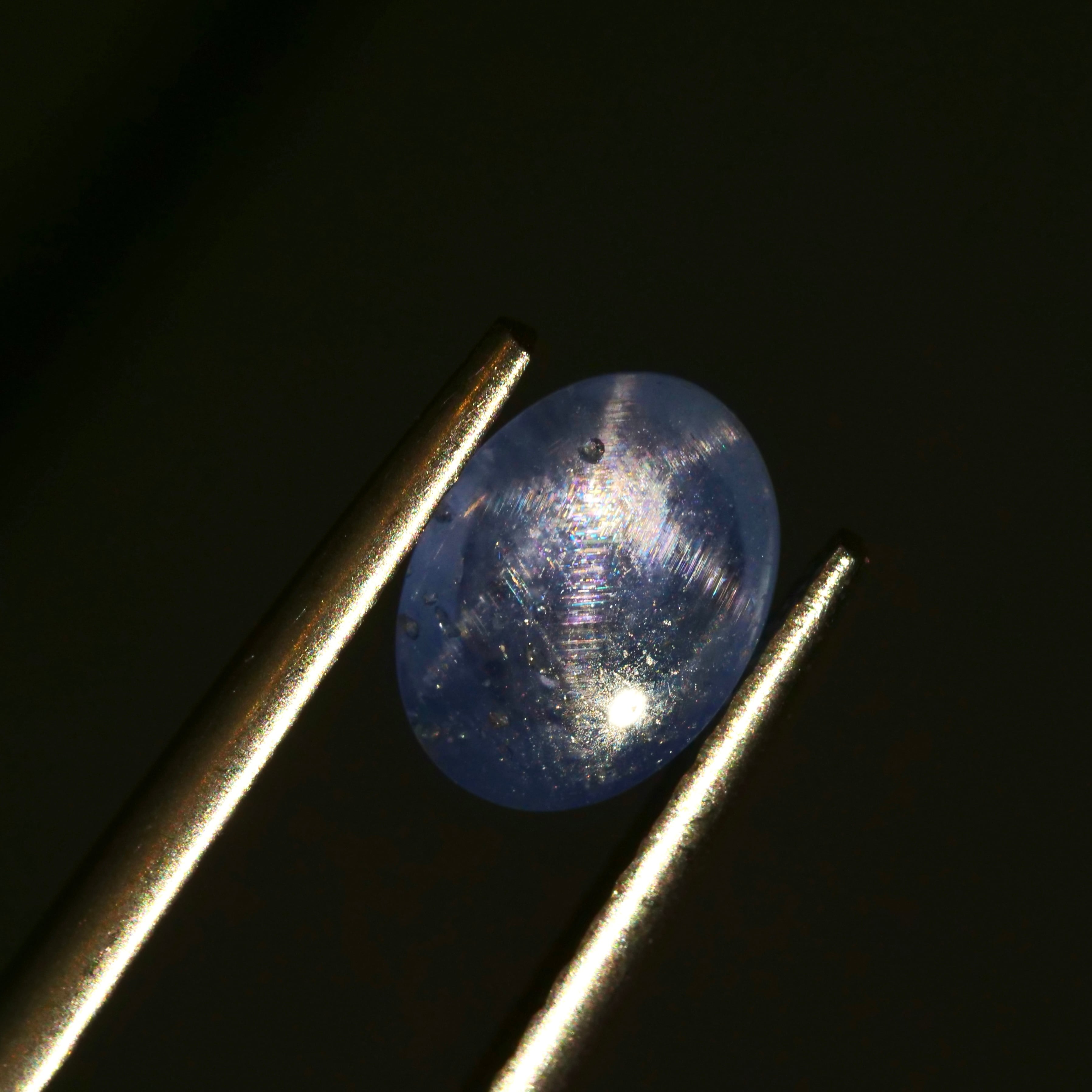 柔らかな雰囲気のコバルトブルーのツヤ感が大人な印象のカボションカットのスターサファイアです。落ち着いた表情の中に鮮やかさも感じるカラーの中から、ふんわりとスターの輝きが広がります。繊細な煌めきのシルクインクルージョンも楽しめるピースです。シルクインクルージョンは非常に珍しく、内部で乱反射した光が美しい絹糸のように繊細に煌めきます。