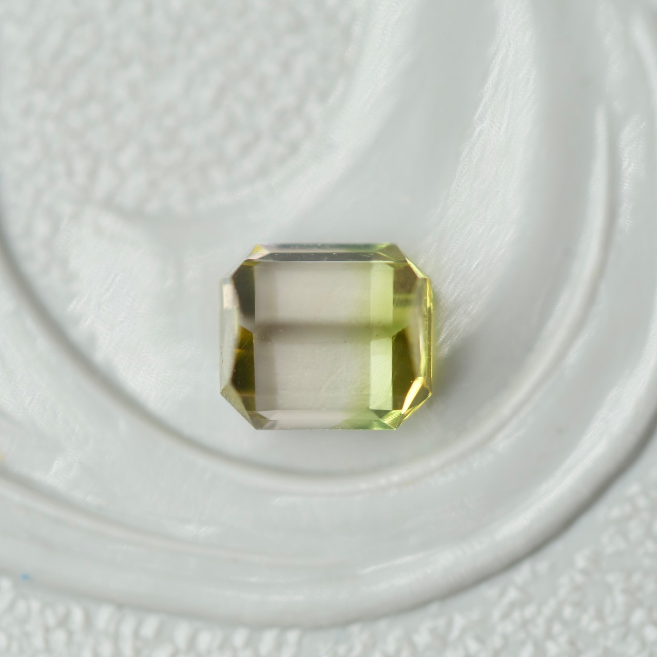 淡く温かみのある桜餅カラーが愛らしい、エメラルドカットのバイカラートルマリンです。