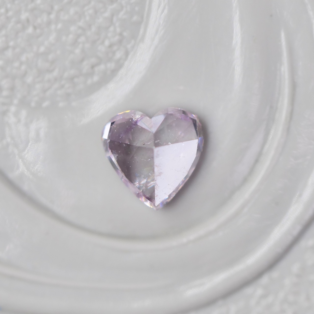 美しくバランスの取れたカットと、全体に広がる、パープルを噛んだ上品なピンクが魅力的な、ハートカットのピンクダイヤモンドです。