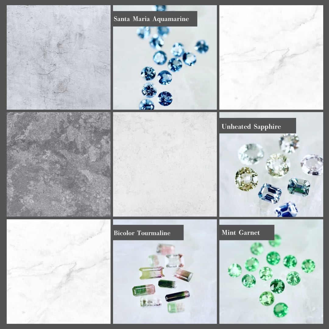 バイカラートルマリン、非加熱サファイア、サンタマリアアクアマリン、ミントガーネットの【4石】お入れいたします。