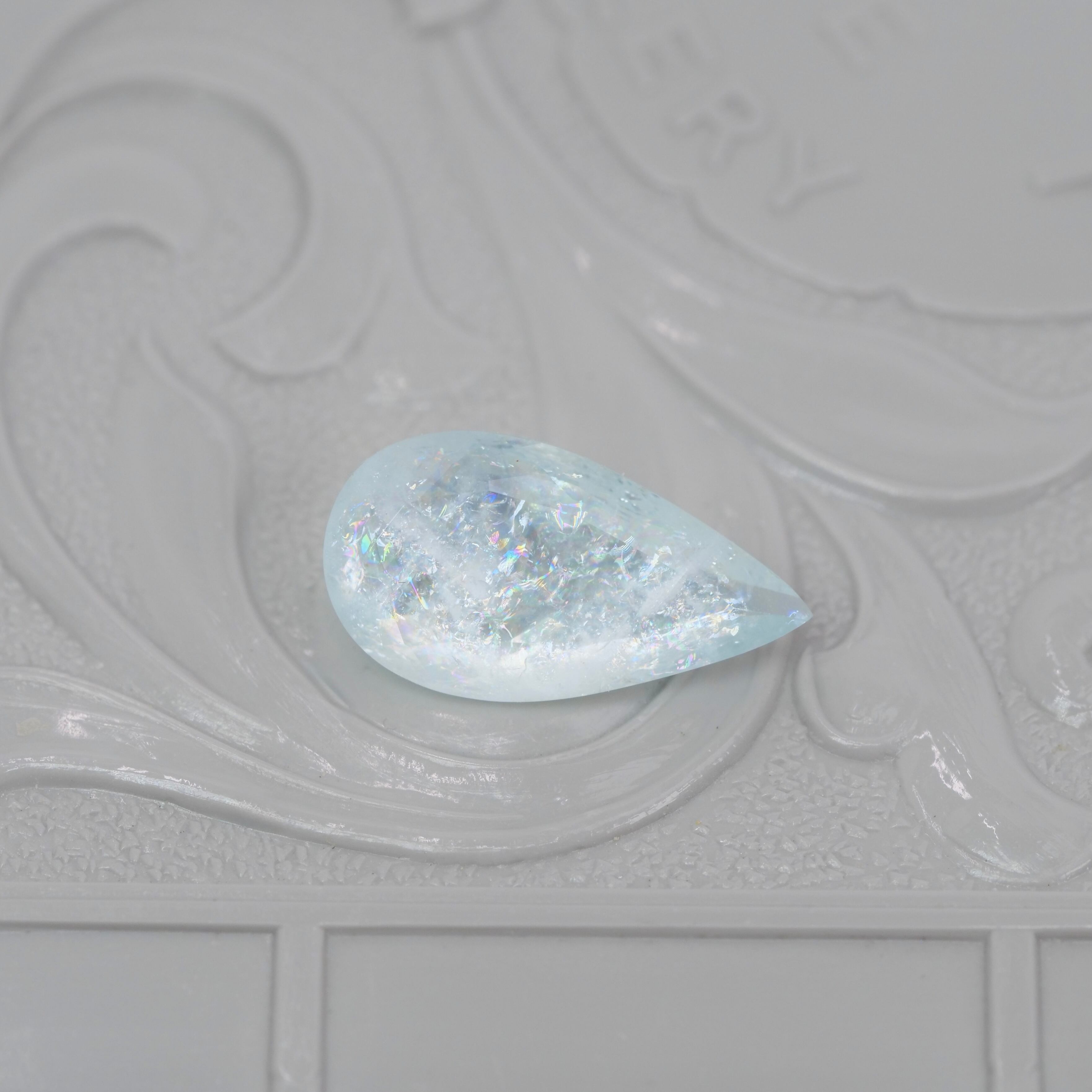 レインボーアクアマリン 1.71ct ペアシェイプカット 12.2mm×6.5mm×4.0mm【MJ2906】