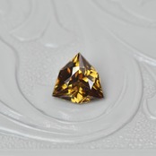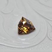 コントラストの効いたダークブラウンの中で煌めくイエローカラーの煌めきが印象的な、トリリアント特殊カットのジルコンです。