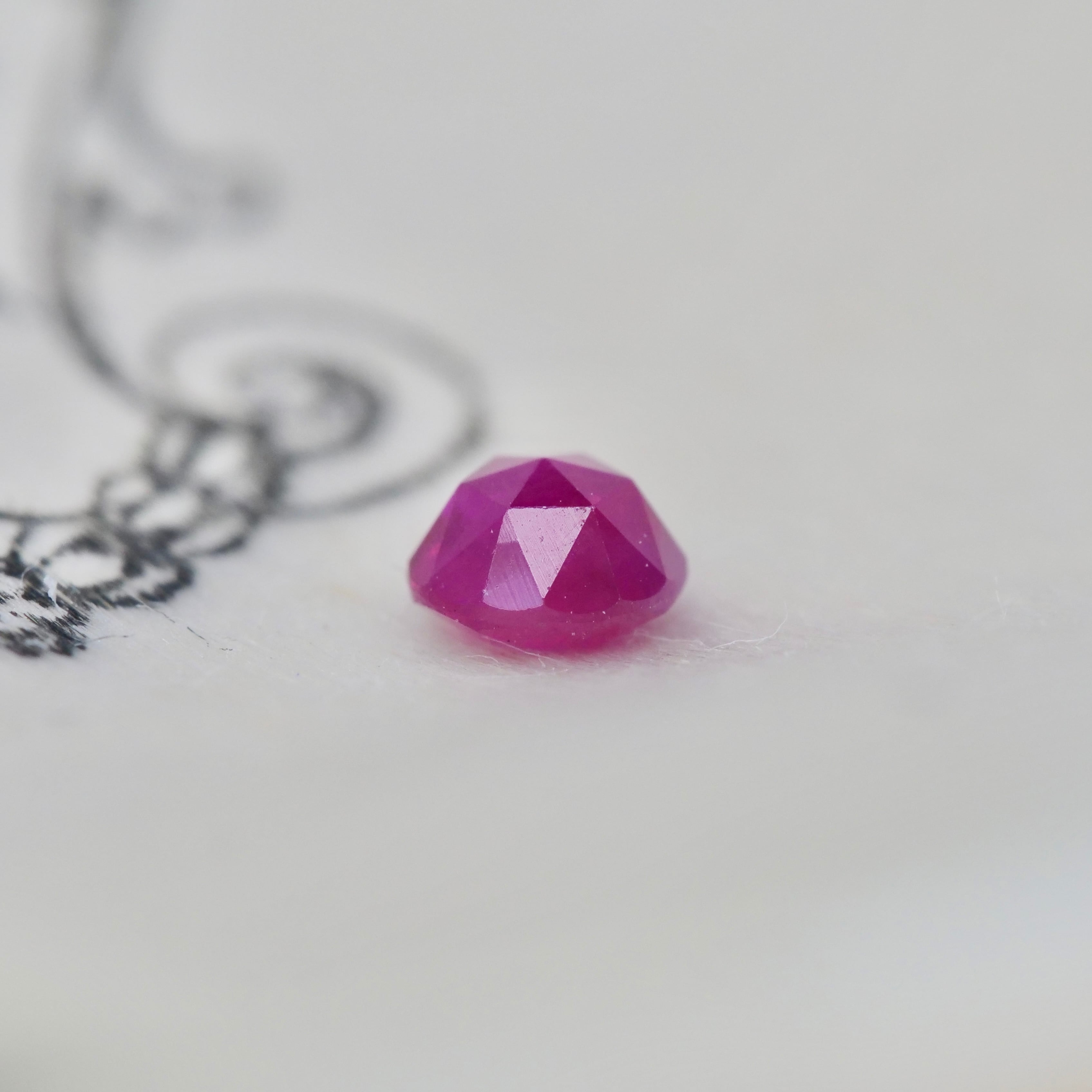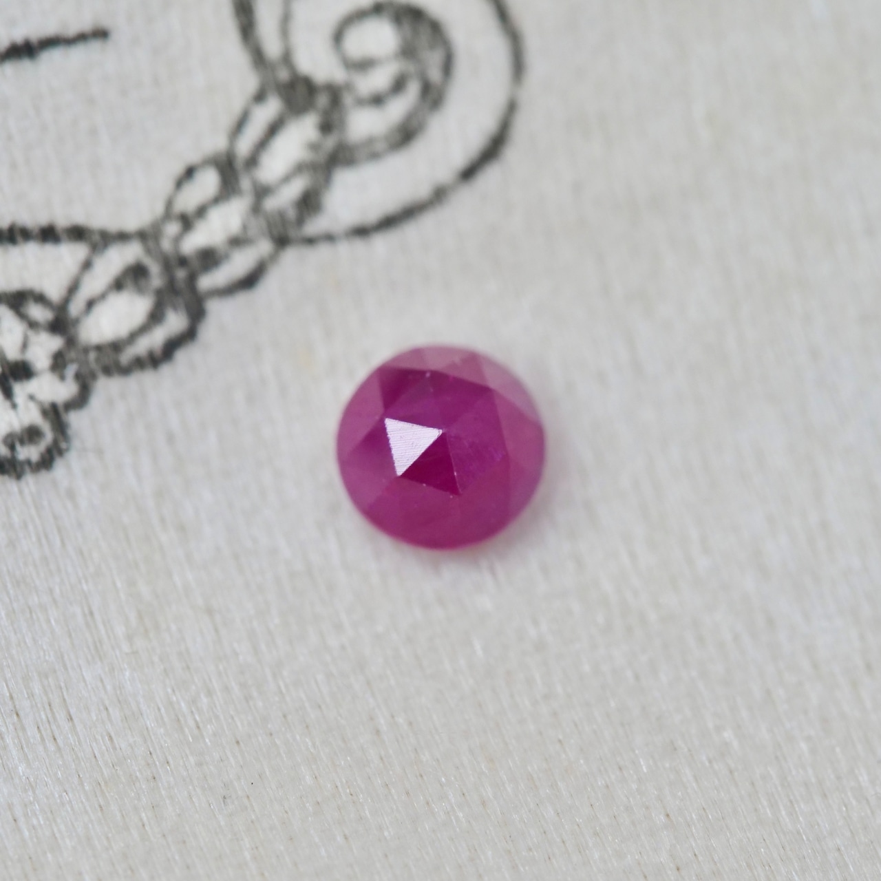 深く色づいたピンキッシュレッドが上品な印象の、ローズカットのルビーです。