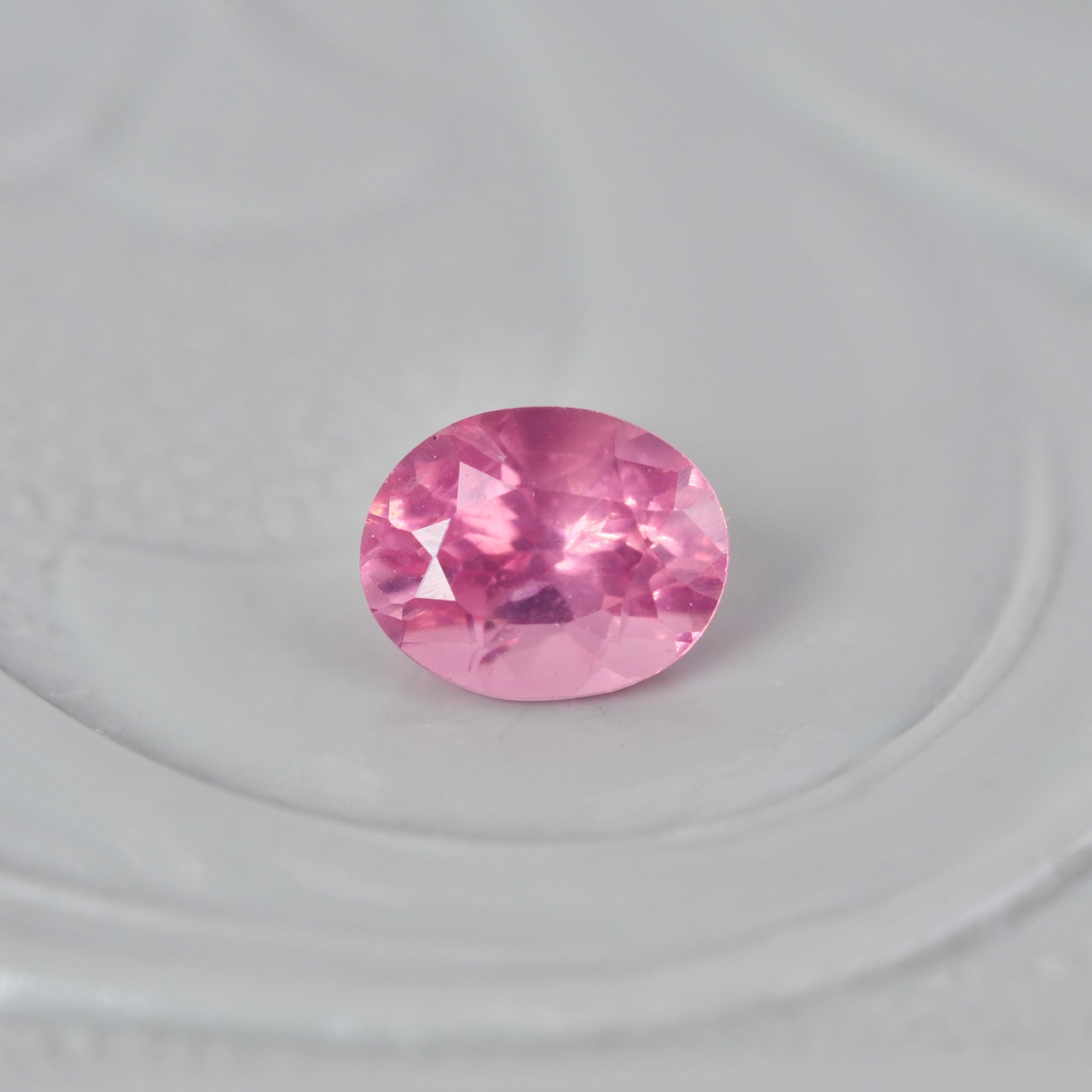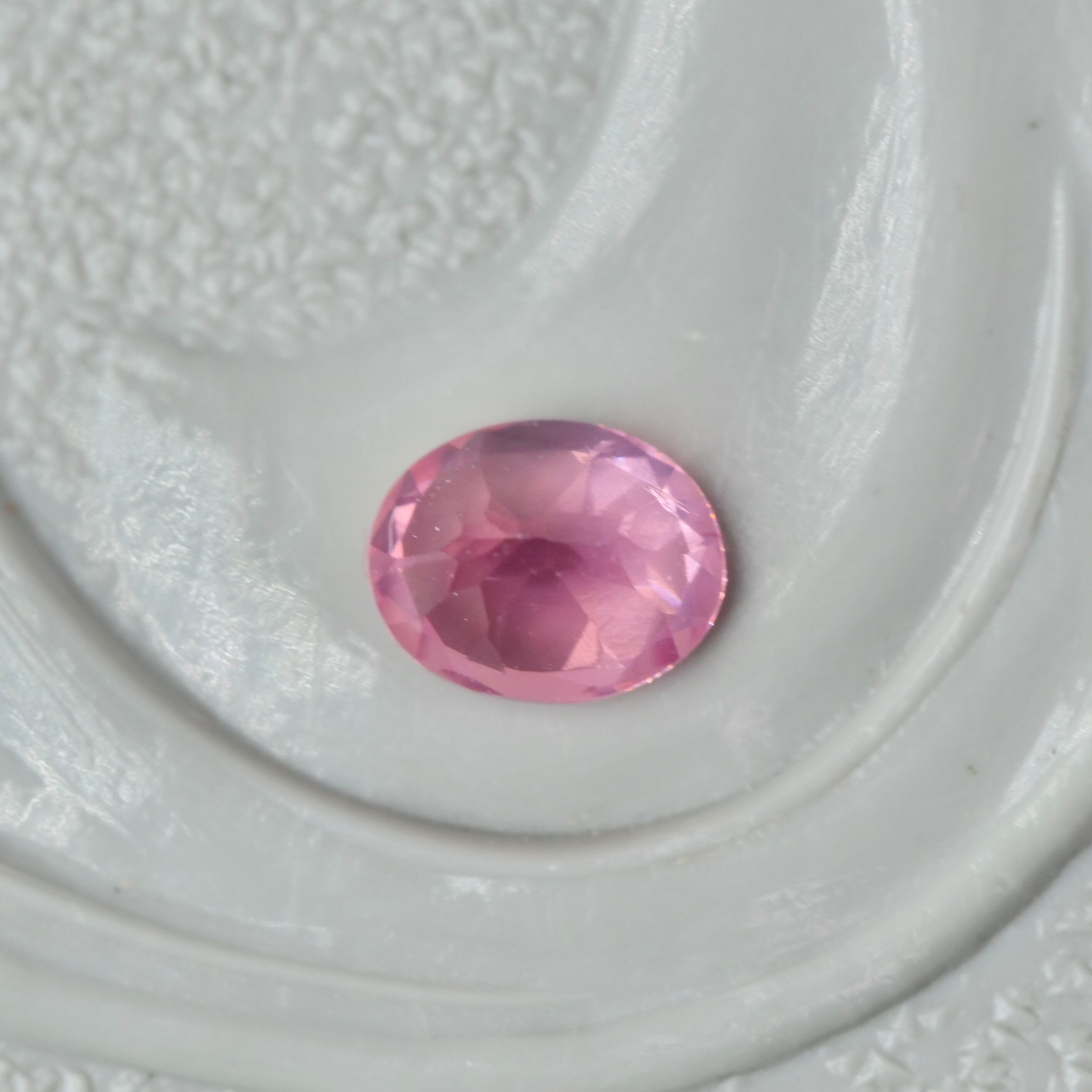 愛らしくふんわりとした桃色が広がる、オーバルカットのスピネルです。