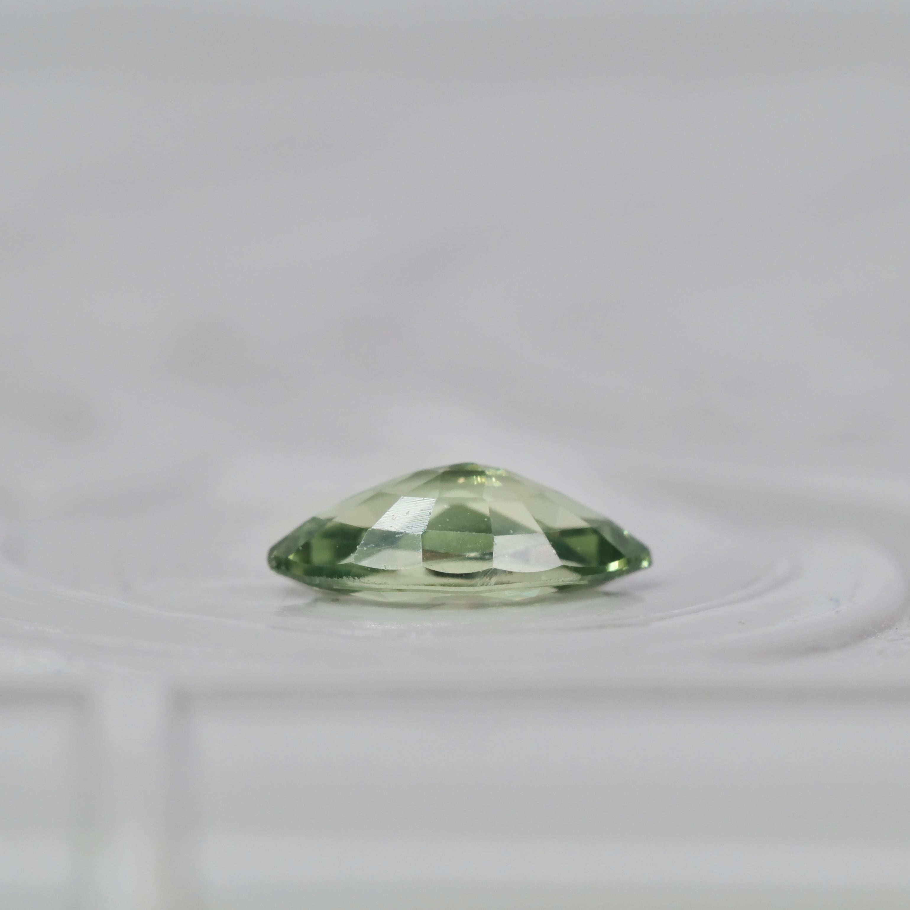 青々と茂る、生命力あふれる葉のようにフレッシュな色彩の、マーキスカットのサファイアです。