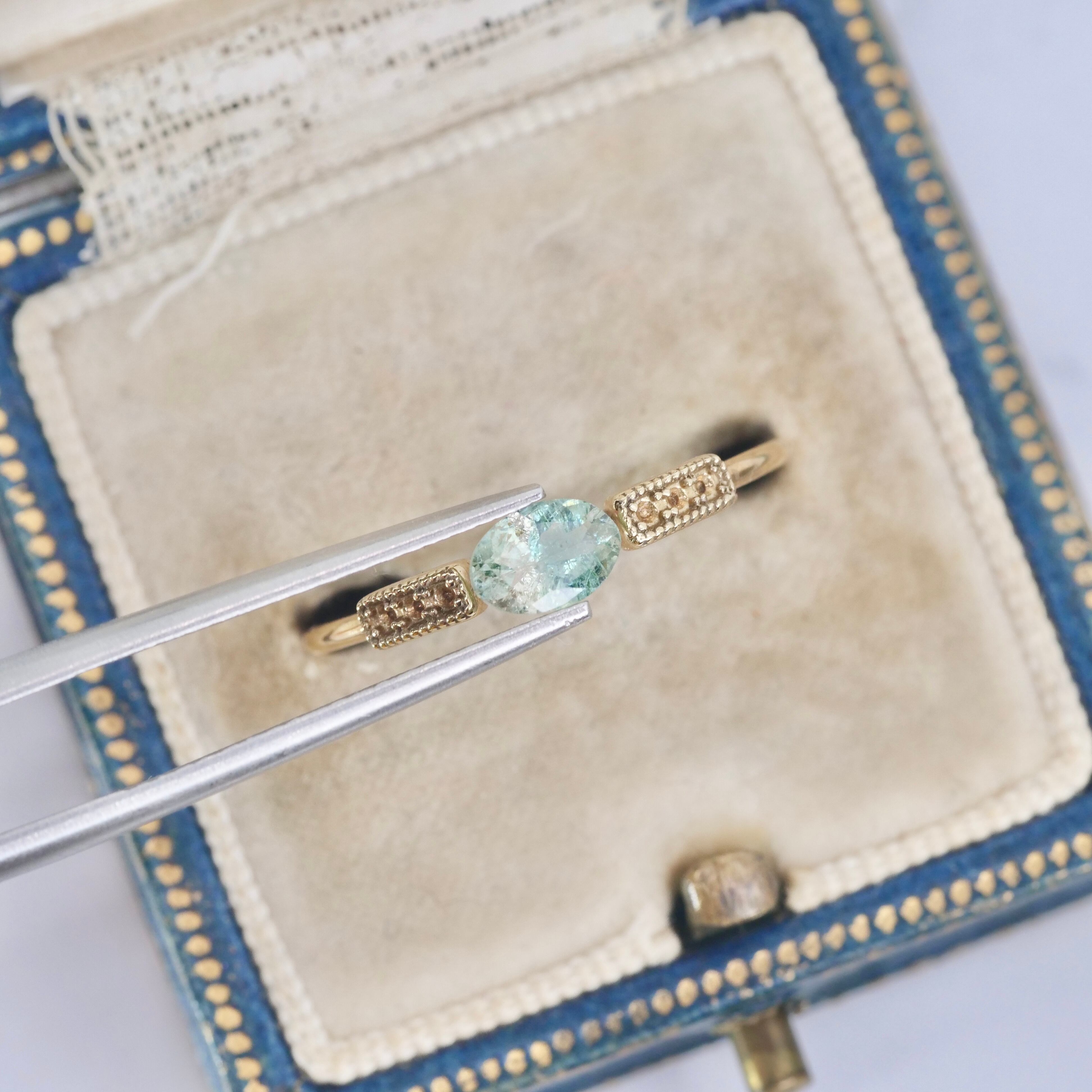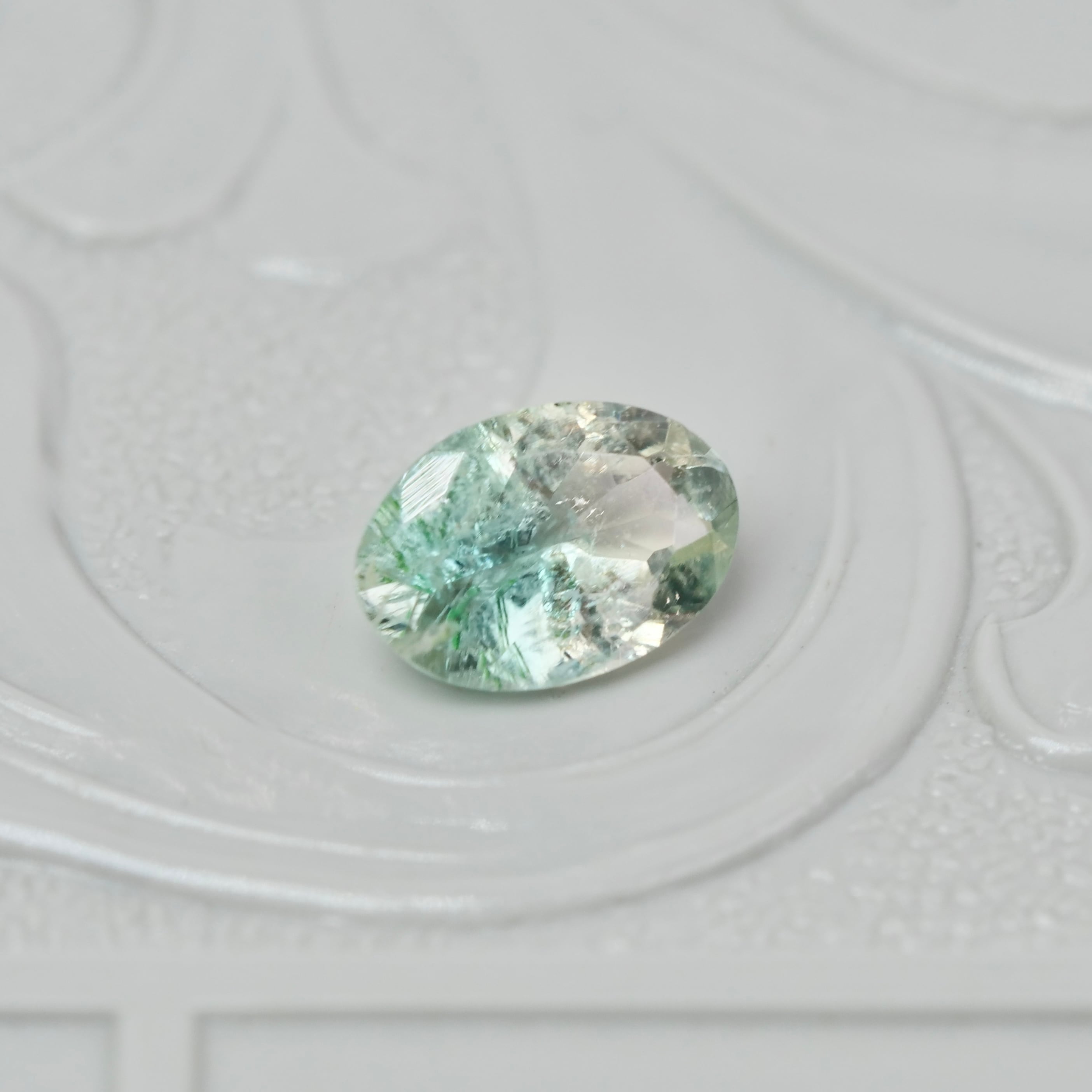 全体がグリーンを噛んだクリアブルーに色づいた、オーバルカットのバイカラートルマリンです。
