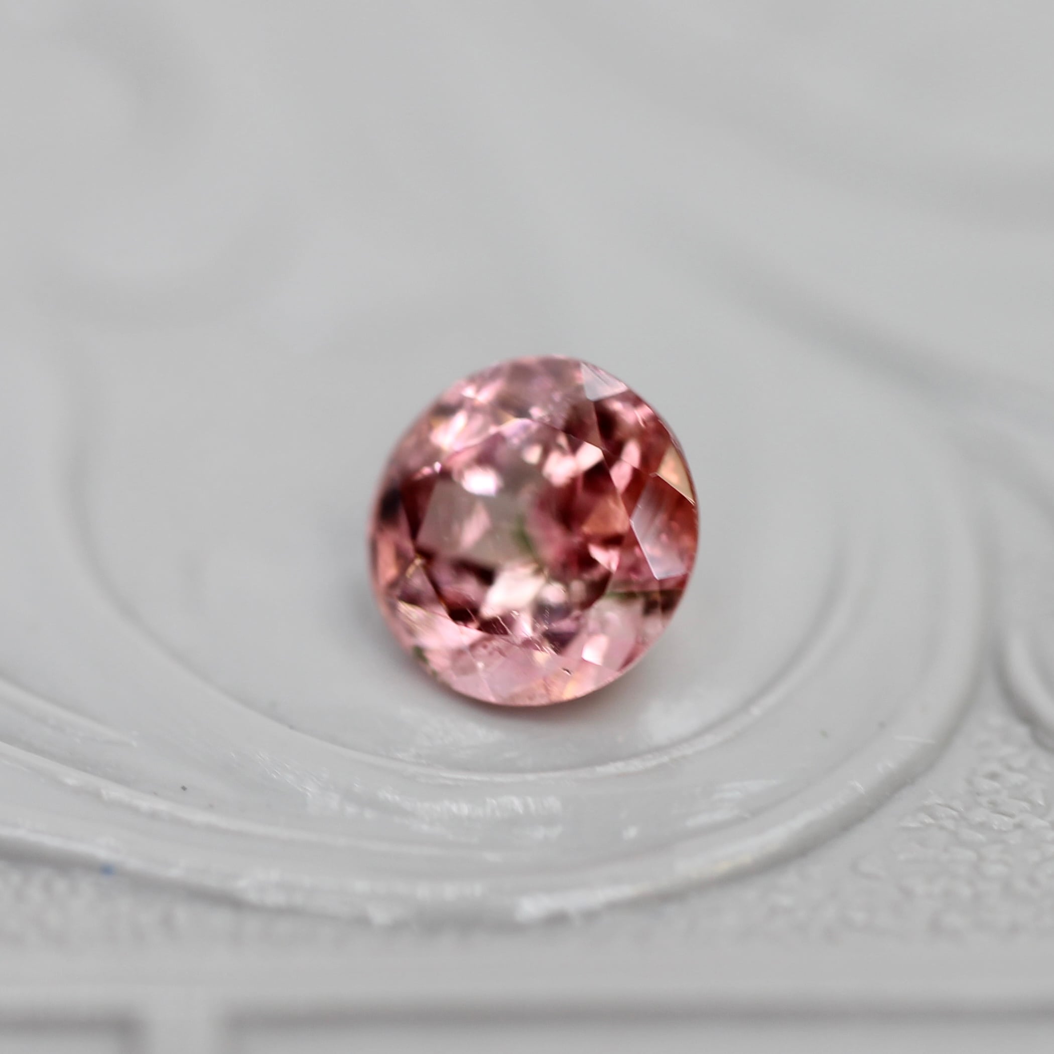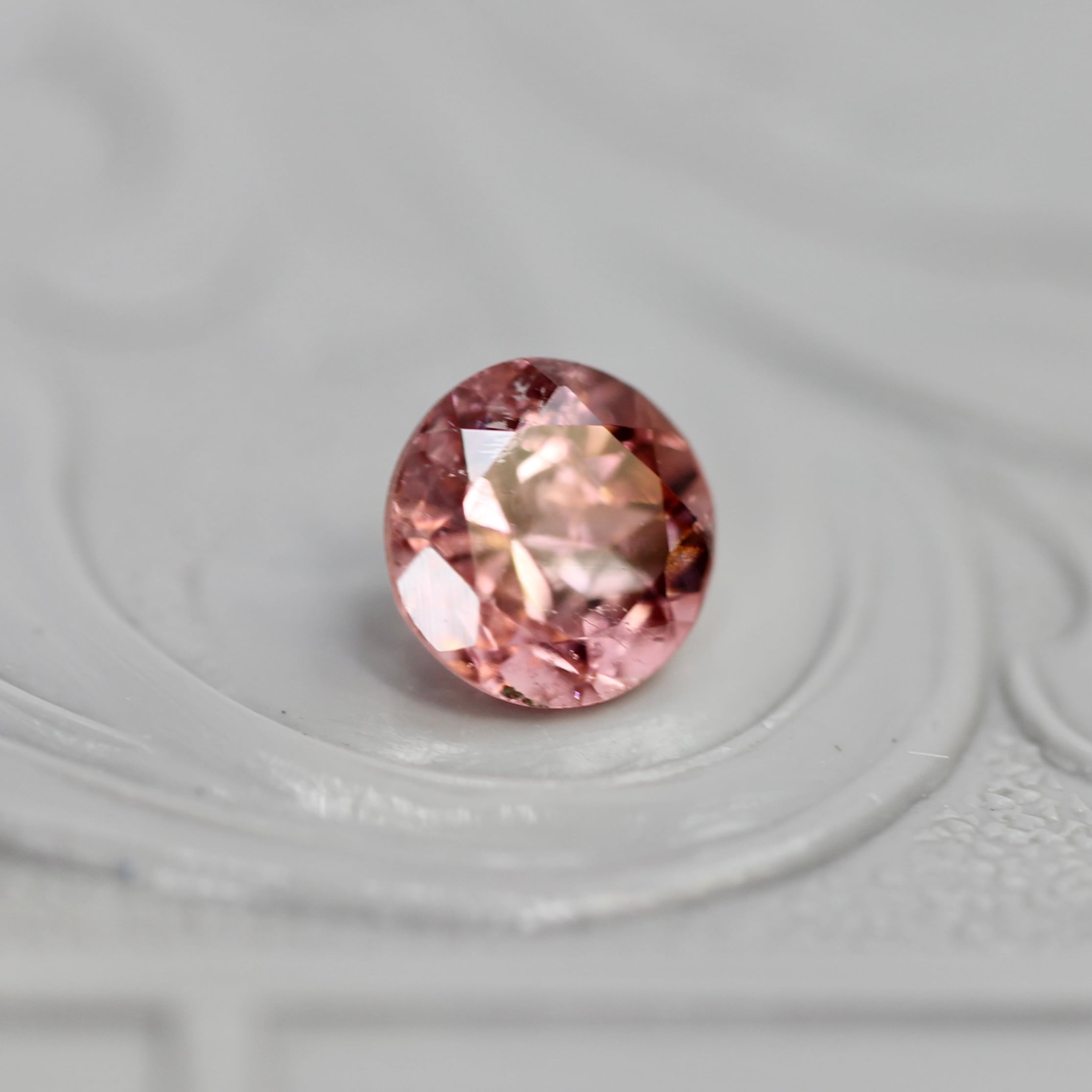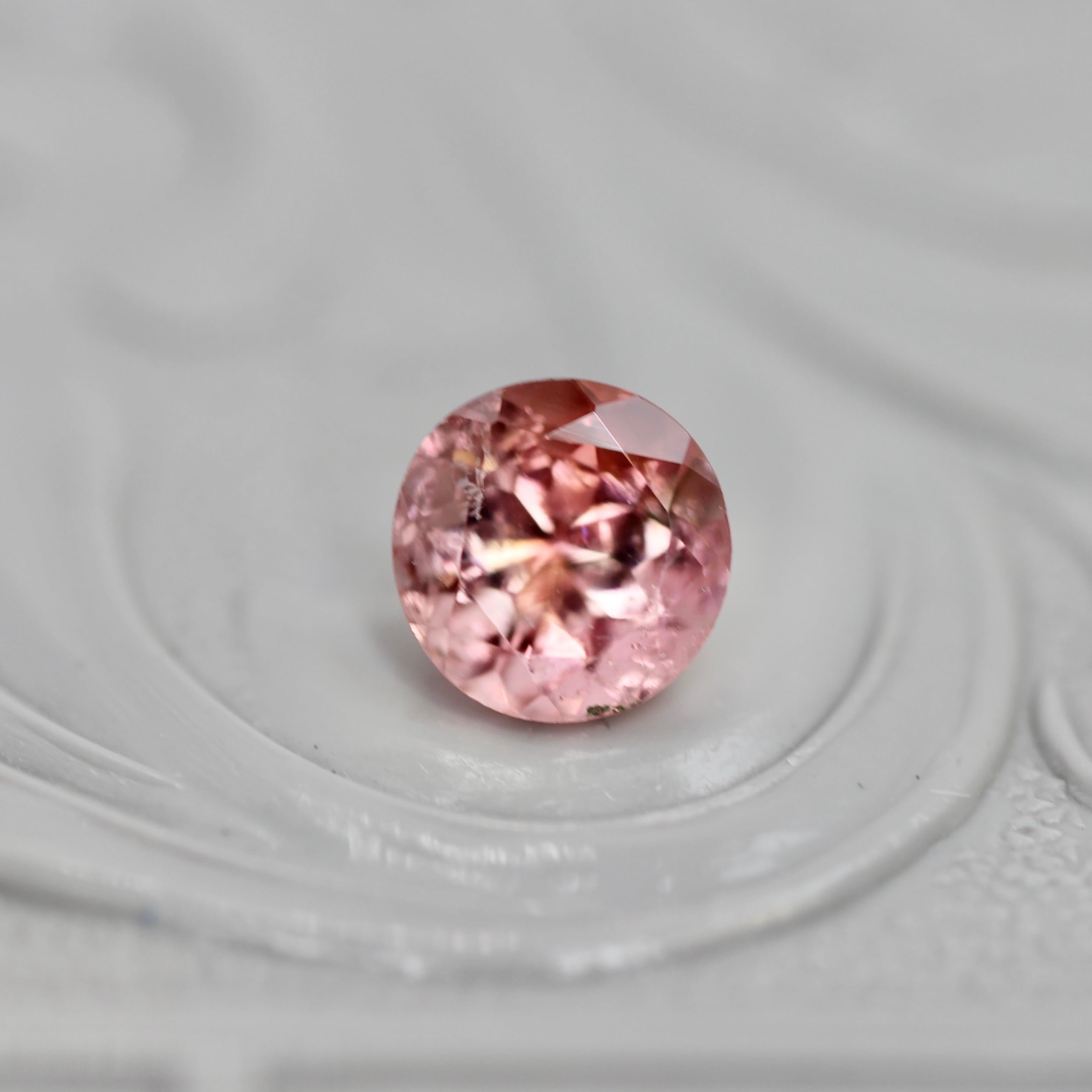 フレッシュなピンクカラーの濃淡が可憐な印象の、ラウンドカットのバイカラートルマリンです。満開の桜のように華やかで優しい色合いと煌めきが魅力的です。