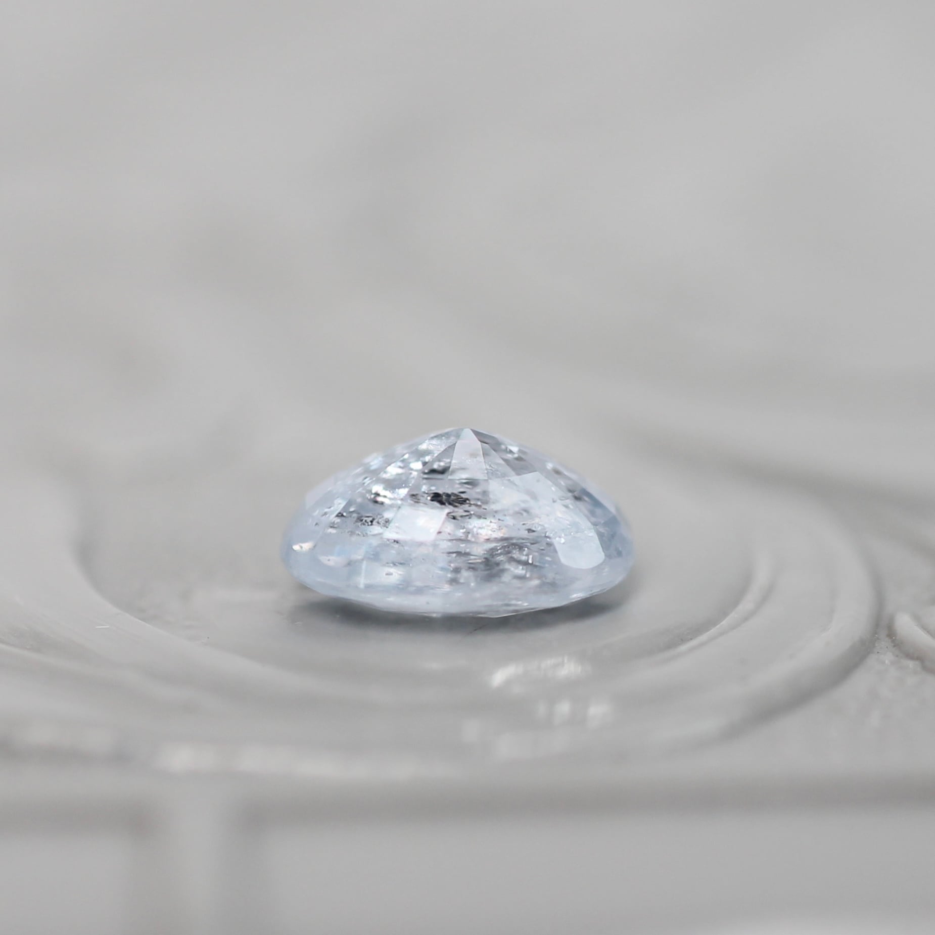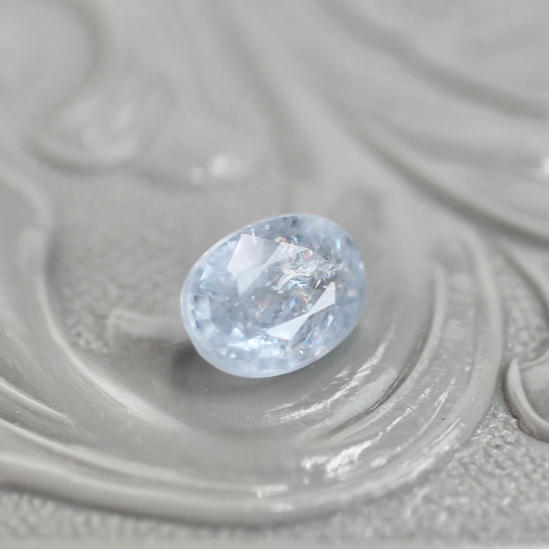 白々としたアイスカラーのライトブルーが涼しげな印象のイリデッセンスサファイアです。シャリシャリ感のあるインクルージョンが個性をプラスしていて、自然が生み出した神秘的な雰囲気を纏っています。