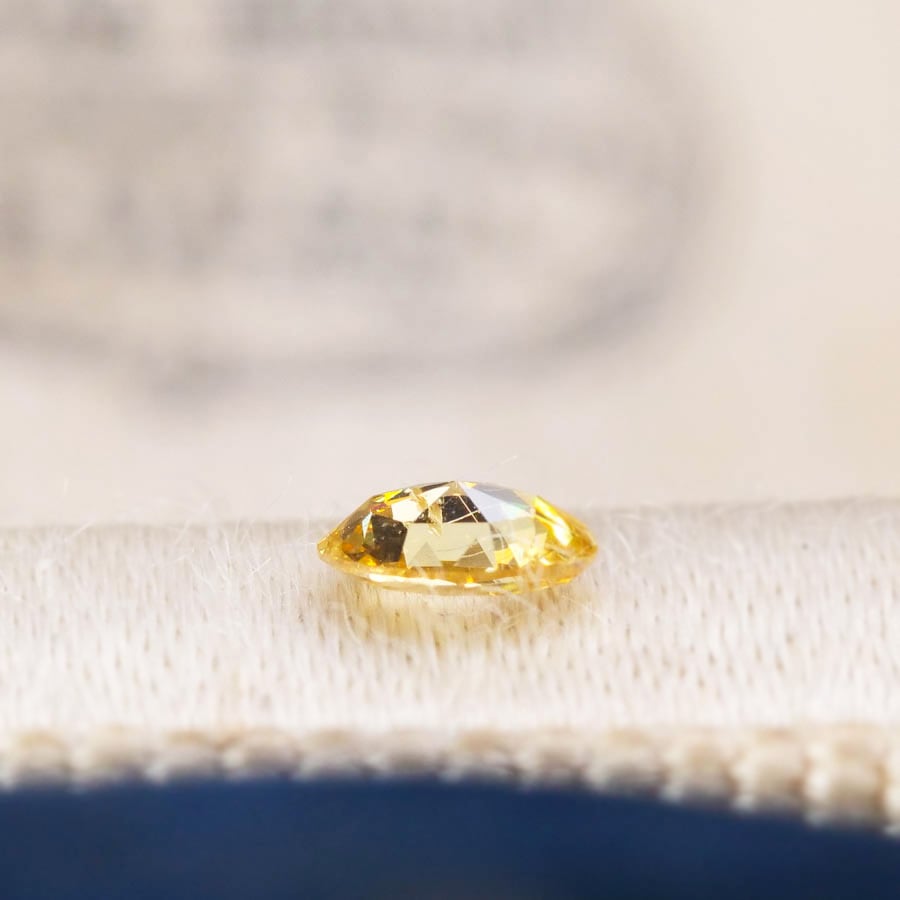 甘く香るはちみつカラーの透明感が上品な、オーバルローズカットのダイヤモンドです。光を受けた際の繊細な煌めきが印象的です。バラの蕾に似ていることから名付けられた「ローズカット」はオールドカットの一種で、三角の面がキラリと反射して、ウルウルとした煌めきを内側から放ちます。