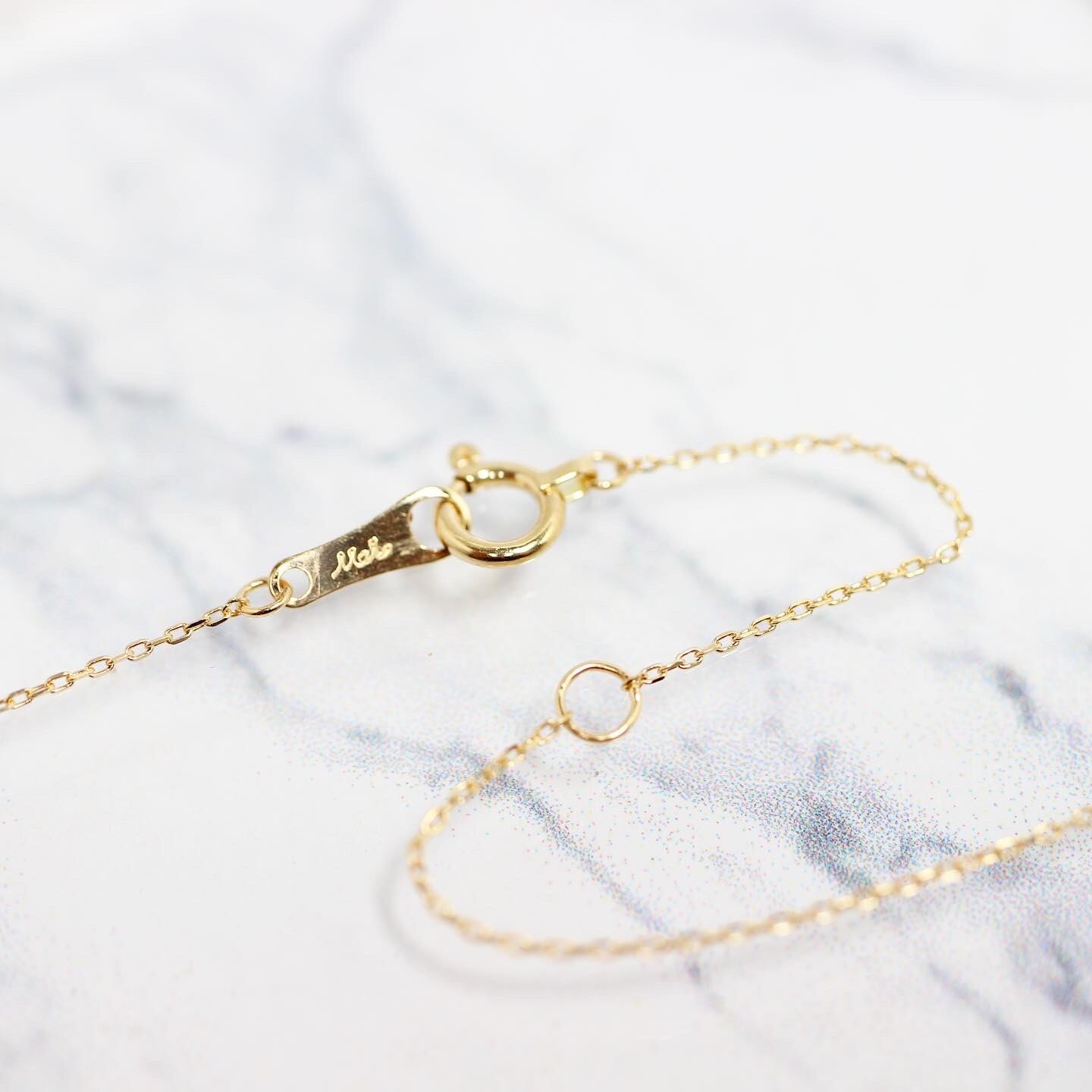 華奢なゴールドチェーンを組み合わせたどこかアンティーク風なデザインです。