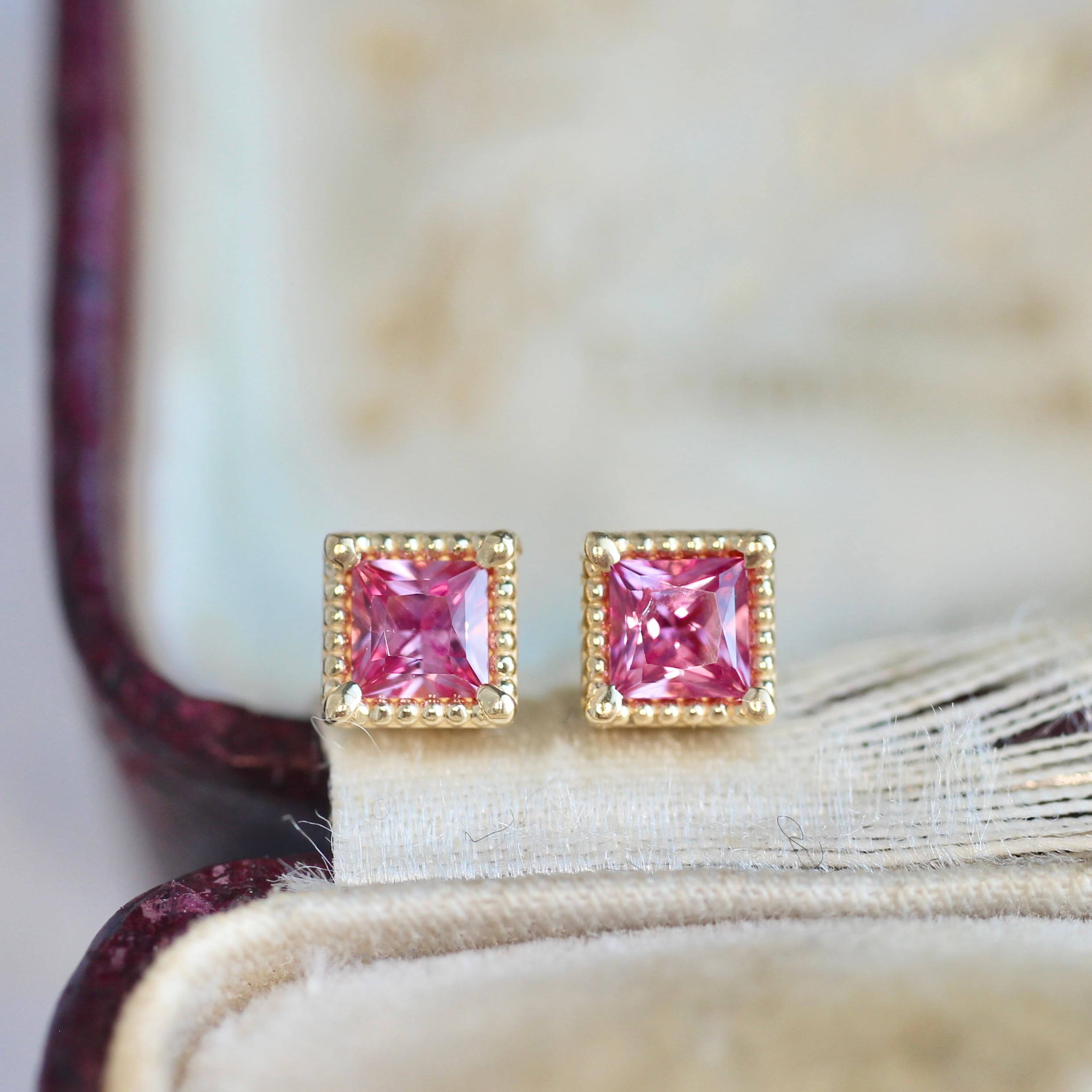 アヤナスピネル 3mm×3mm K18YG ミルフレーム ピアス 片耳 【MJ2498】