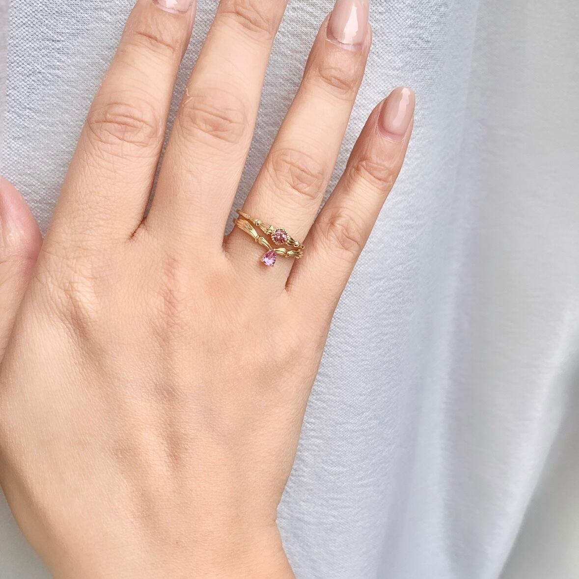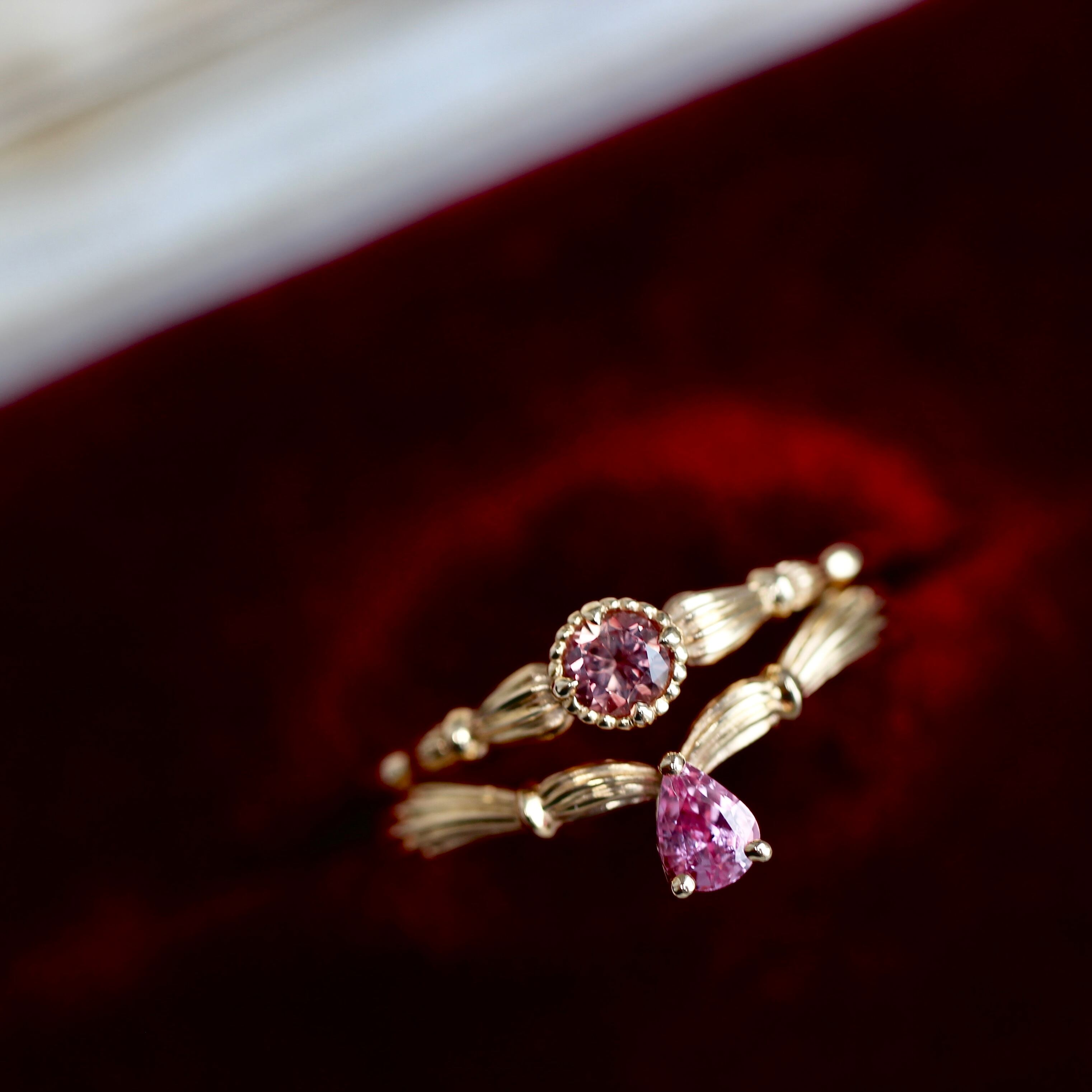 こちらのパパラチアサファイアはアンティークローズのようなノスタルジックな色味をしています。可憐さもありつつ、落ち着いた大人のピンクを感じさせてくれます。