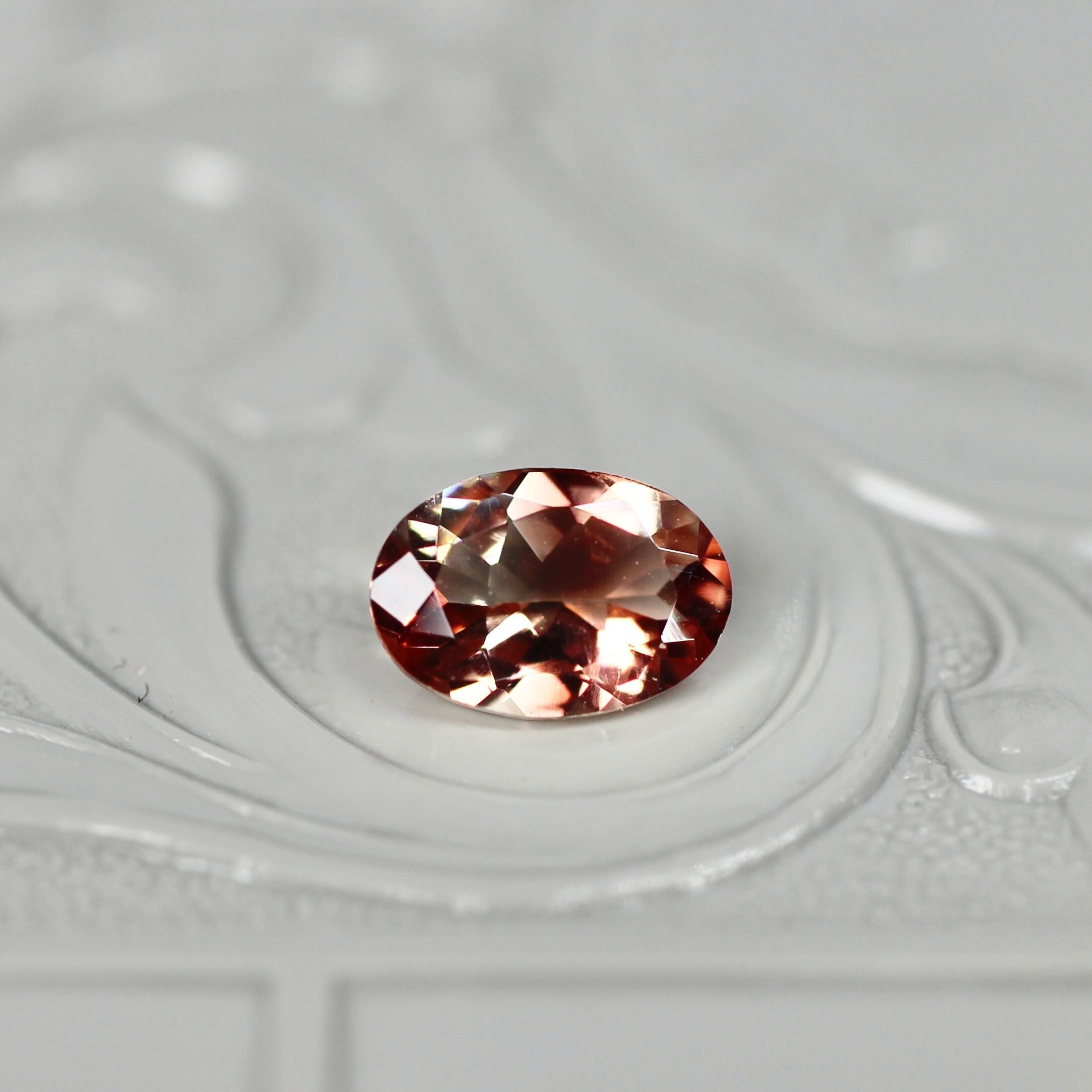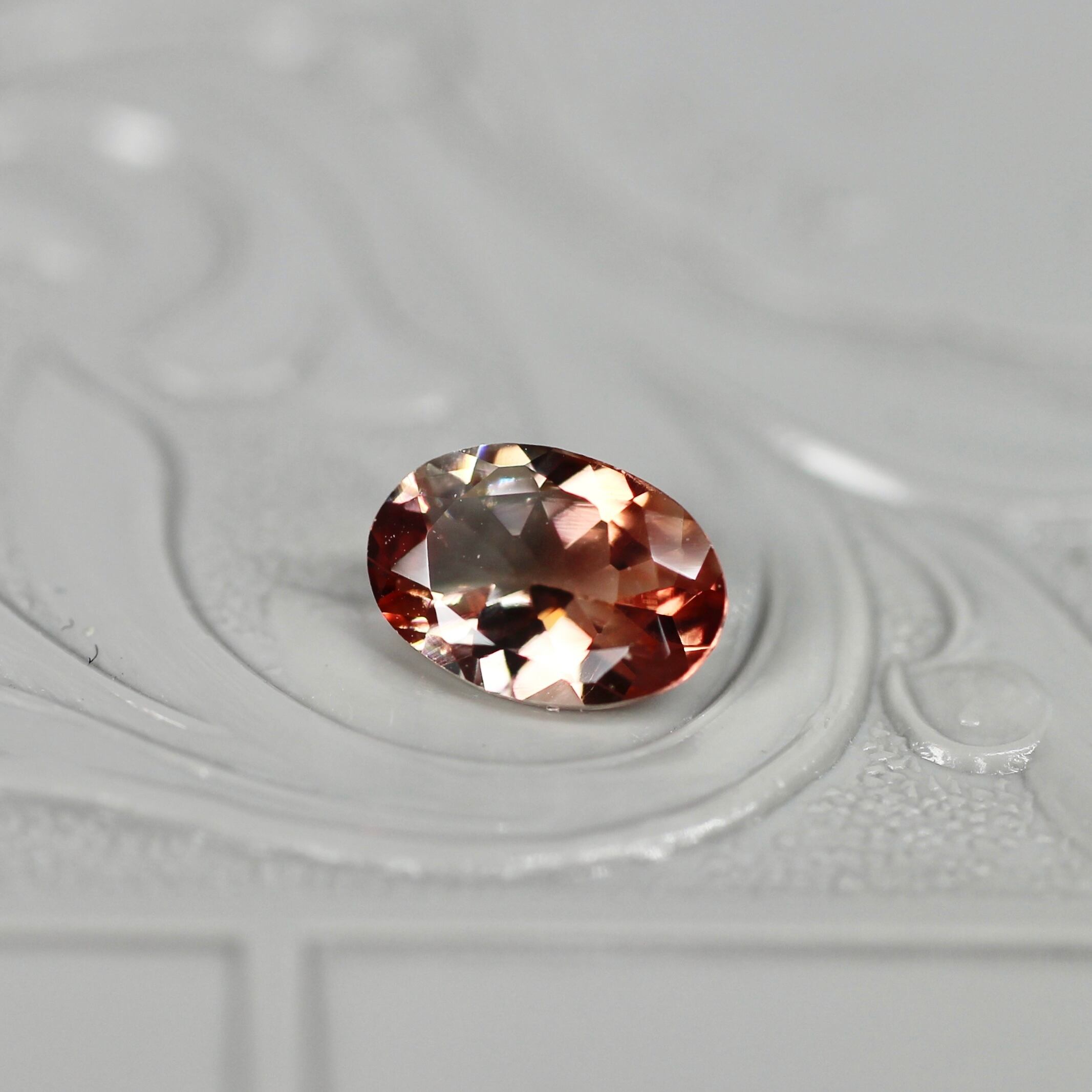 淡くクリアなブラウンと、ほんのりグレイッシュなレッドのバイカラーのラブラドライト。